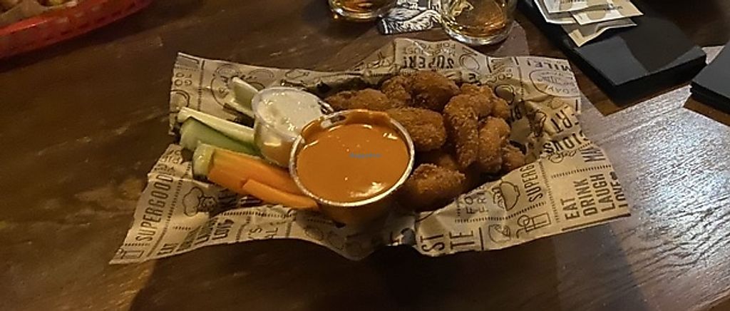 They have some vegan options like wings made from cauliflower, fries, and burger. Vegan dips include aioli and shiracha mayo. Wings and fries were tasty!