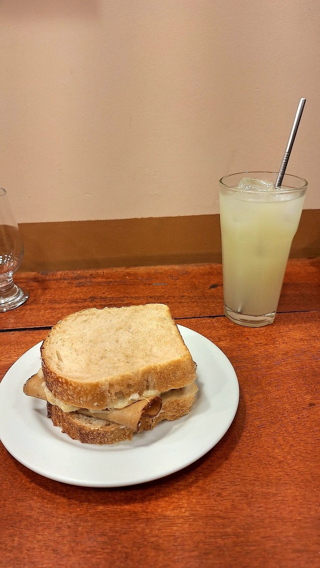 Infelizmente as opções que eu mais queria experimentar não estavam disponíveis, pois podem variar conforme a fornada do dia. Estava com medo de ser pouca comida, mas o misto quente pelo menos veio beeeem recheado.