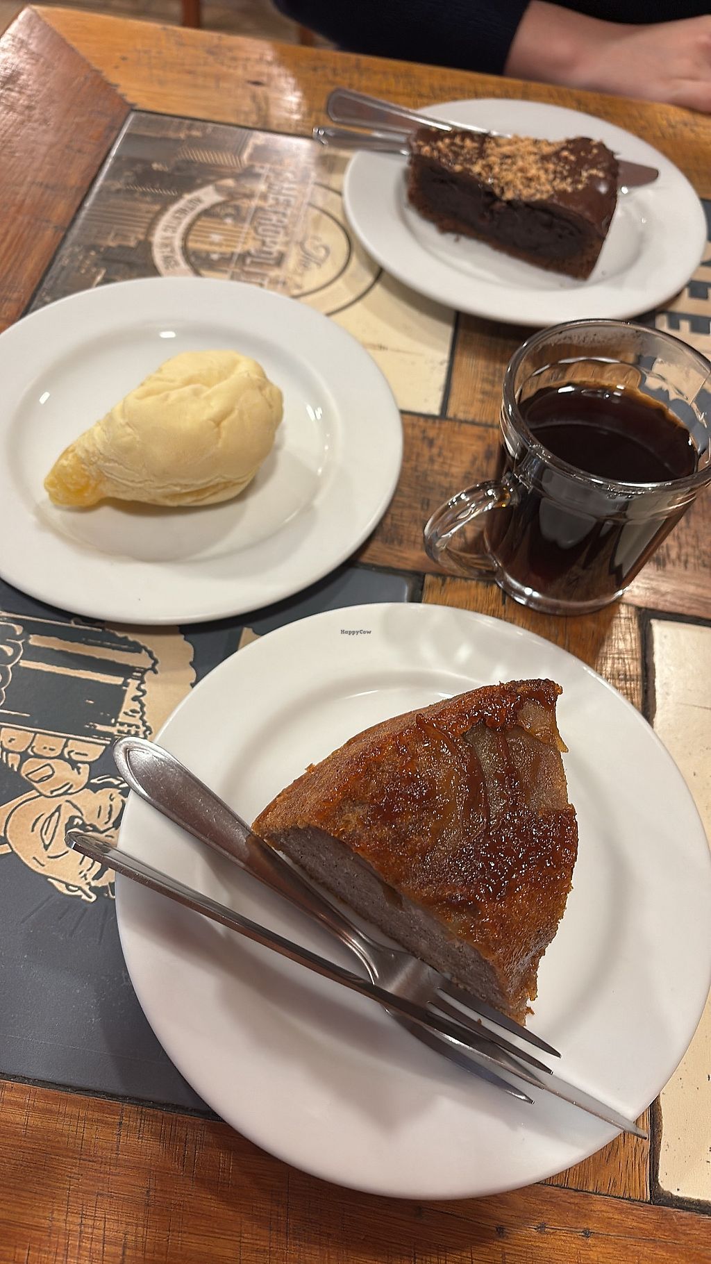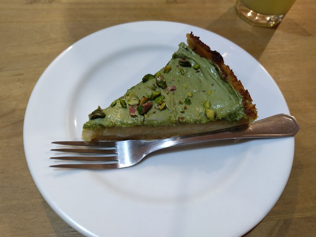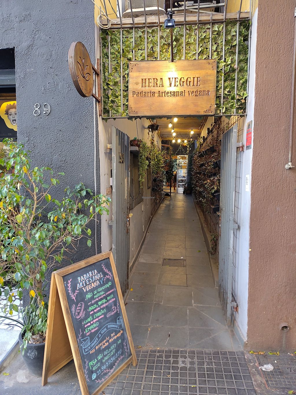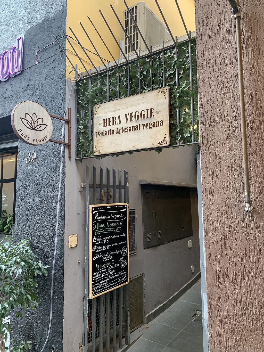 I am really impressed by Hera Veggie! The place is small and it was crowded since it was Saturday, but I managed to get a table to sit. The products available change every day and are all super fresh. I wanted to try their pão de queijo with cream cheese but they ran out, so I ordered the normal bread with cream cheese. I also ordered two sweets because I couldn't choose just one. Despite being crowded, my food was served fairly quickly by the super friendly staff. The portions were pretty big, which honestly was unexpected. The slice of cake was massive and quite tasty, though most of it was somewhat plain (but the frosting on top was amazing). The grilled bread was delicious. The quality of the bread was evident, and the cream cheese was really good! Finally, the slice of pie was my favorite treat. The consistency was perfect and the flavors were mind-blowing. I left completely satisfied. It was a lot of food for not that much money. Totally worth it.