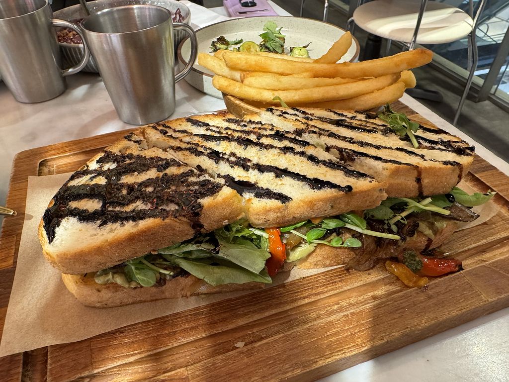 Read moreI had a pesto sandwich which was massive - far bigger than it needs to be, and came with fries. My main criticism of this was the unnecessary balsamic glaze which just made it really difficult and messy to eat.