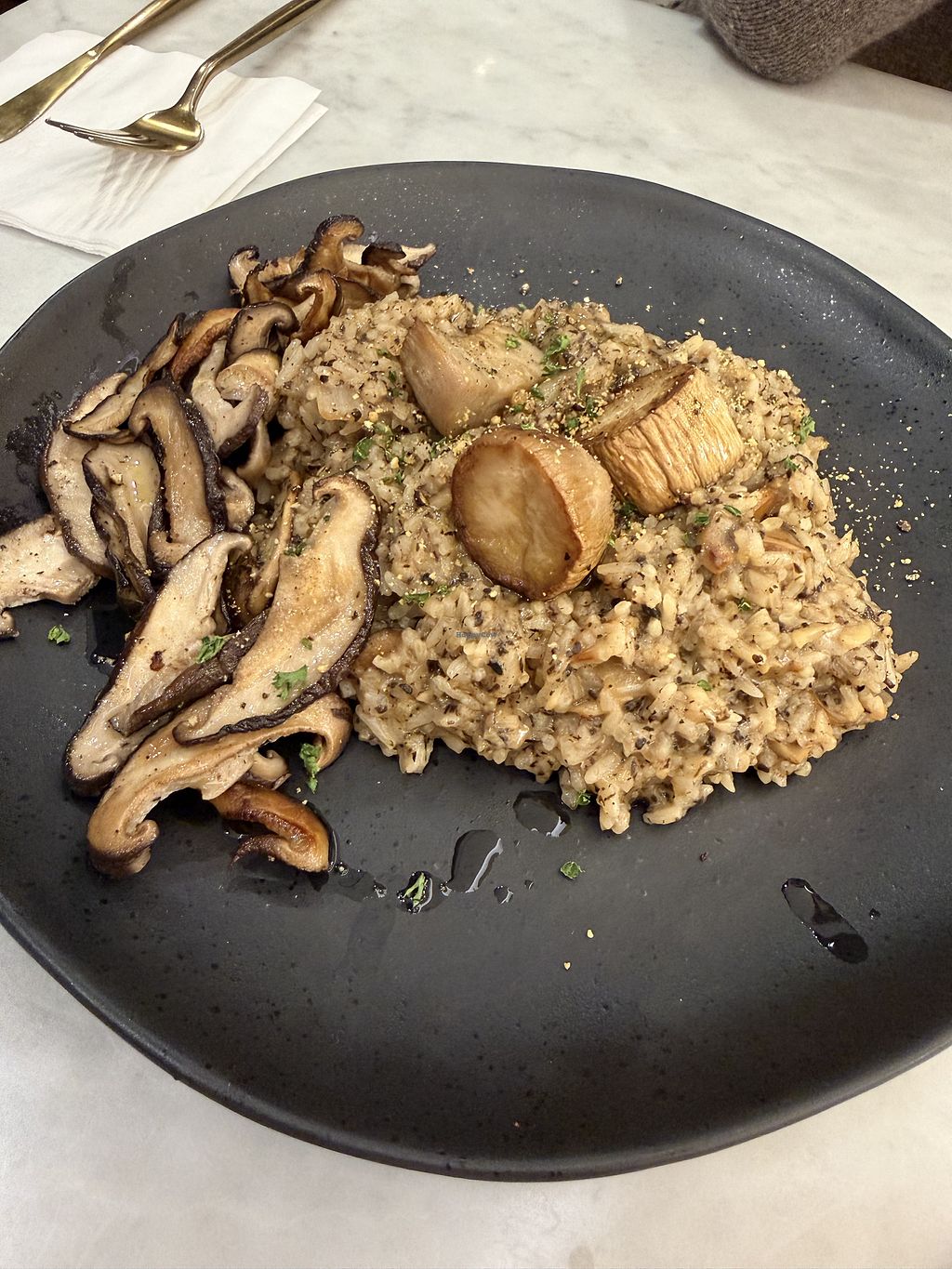 My last day in Taipei, and Happy Cow once again saves the day. Great vegan restaurant nestled in a shopping mall. The menu is broad and all selections were fantastic. As a starter we had the satay and brussels sprouts. for main course we shared mushroom risotto and spaghetti. Only issue was they brought out the main courses before the appetizers, but we rolled with it. Enjoy!