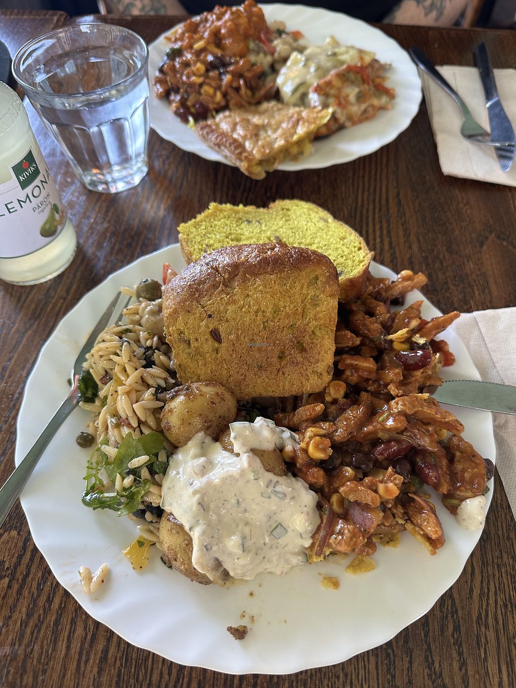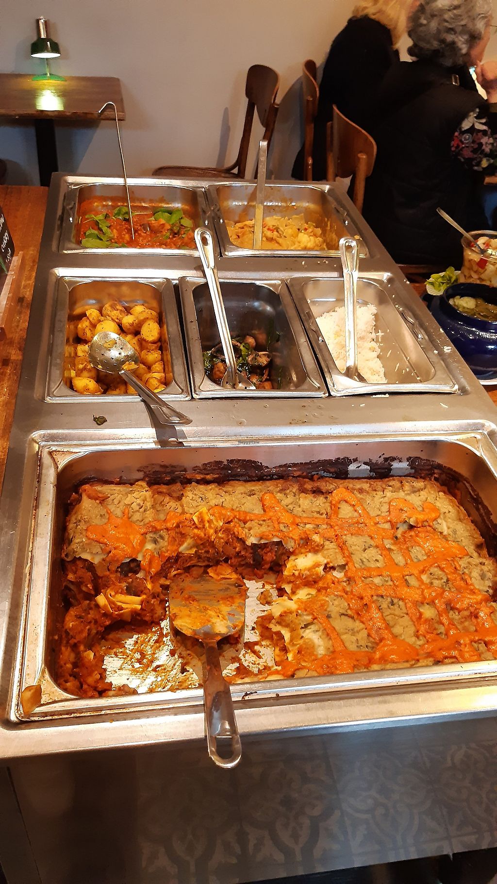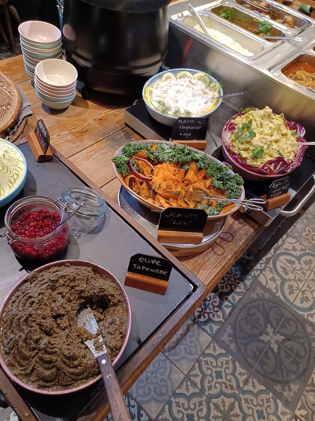 This place does a delicious vegan buffet, with a few hot dishes (Swedish meatballs being our favourite) and lots of fresh and exciting salads as well as bread and sides. The evening buffet also has soup and an additional hot dish (lasagne when we visited). The lunch is cheaper than the dinner buffet.