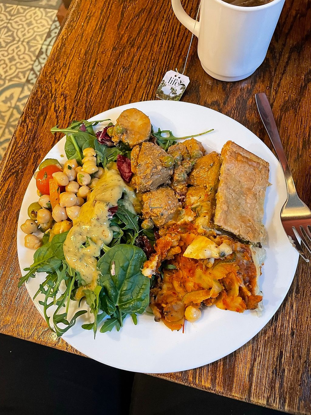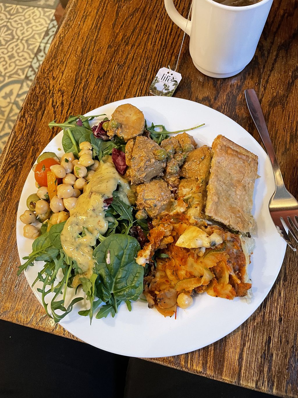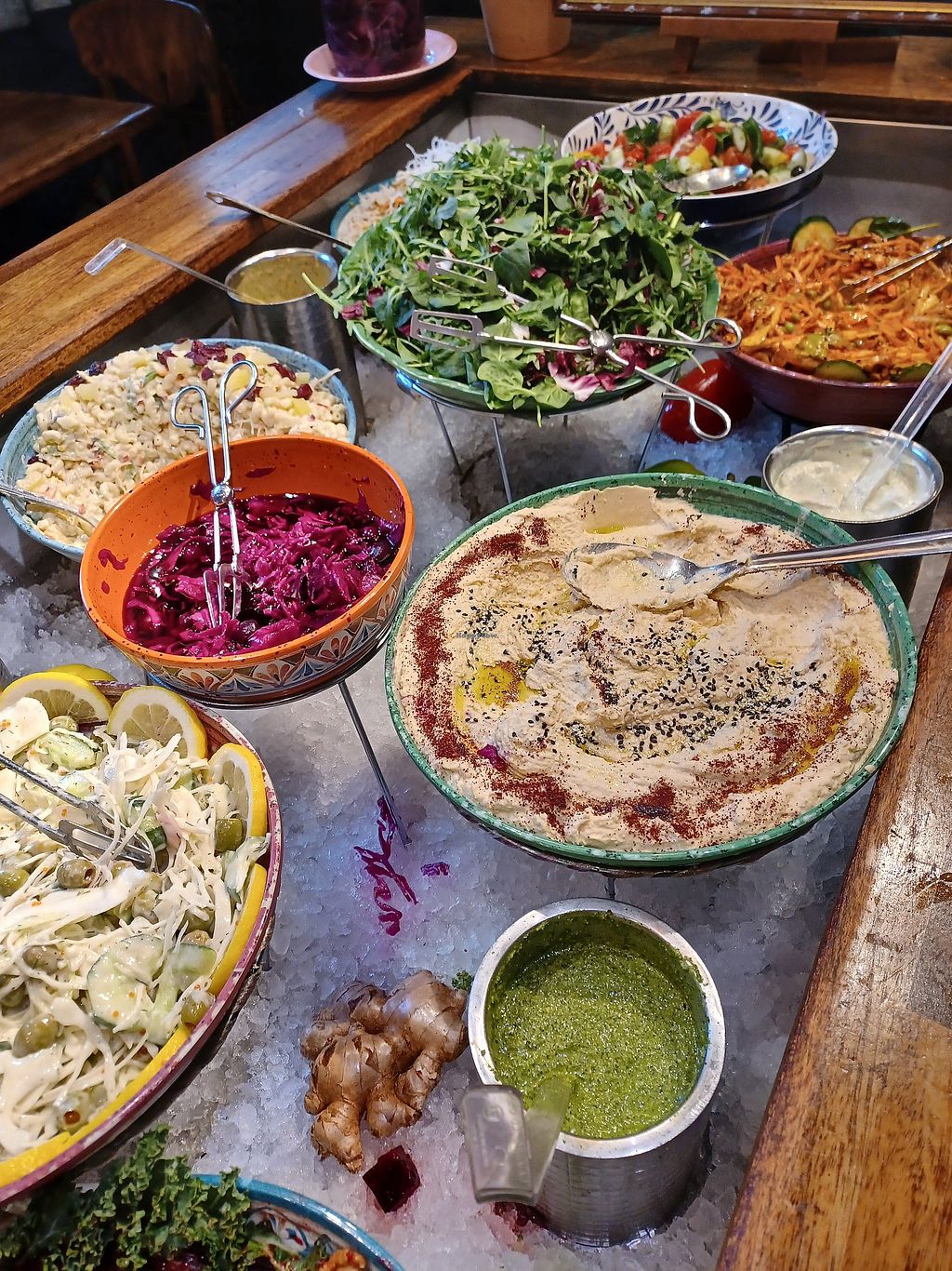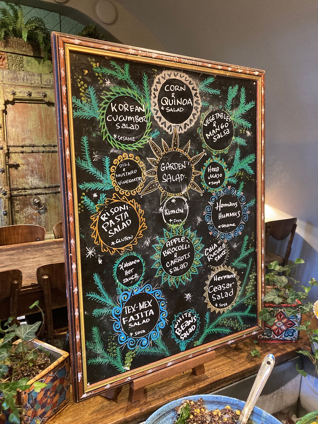 This place does a delicious vegan buffet, with a few hot dishes (Swedish meatballs being our favourite) and lots of fresh and exciting salads as well as bread and sides. The evening buffet also has soup and an additional hot dish (lasagne when we visited). The lunch is cheaper than the dinner buffet.