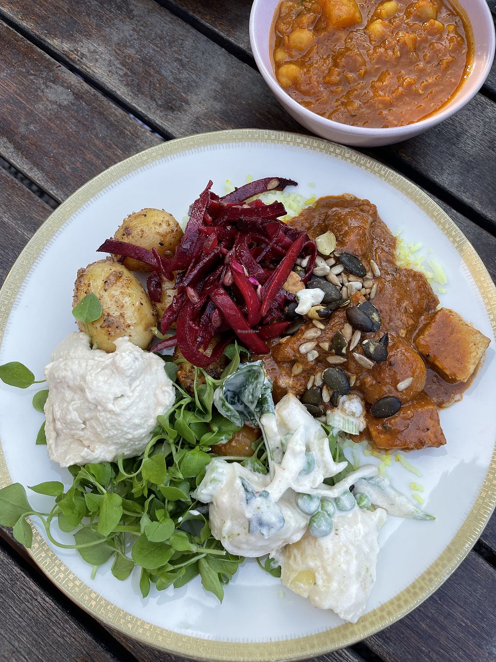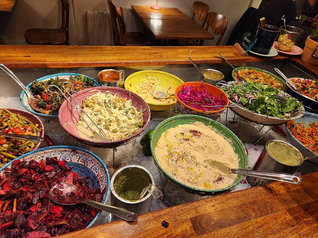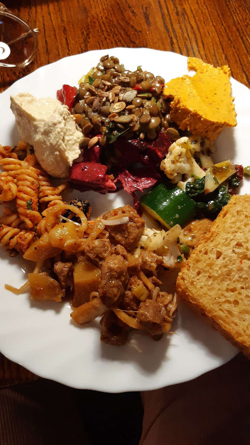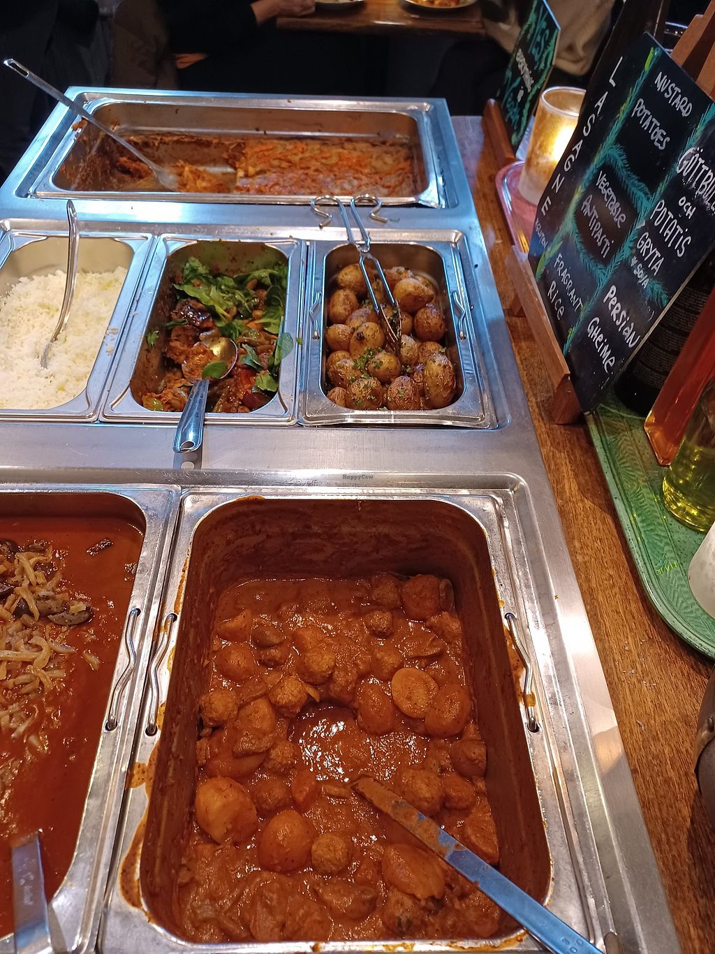 Fantastic all-vegan buffet with a lot of bean, lentils and vegetables. Many different tastes!