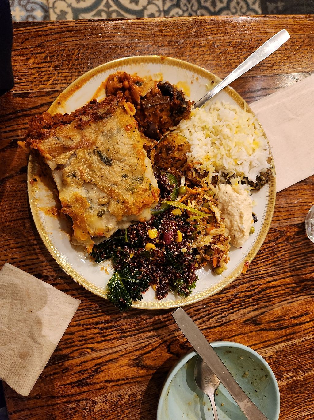 The food was here was so good and loved how we got to try everything! Everything was so tasty but we loved the lasagna and hot food the most. The restaurant was also very cozy and had great views. The price seemed reasonable for the quality/amount of food (especially compared to other vegan restaurants in Stockholm). I would definitely go back and would recommend!