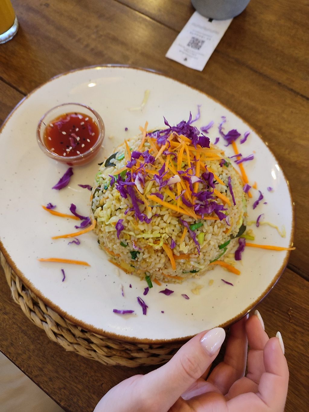 Nice restaurant, small menu but nice vegan food options. Food tasted decent, tried the vegan Kottu and Fried rice. Also great drinks!