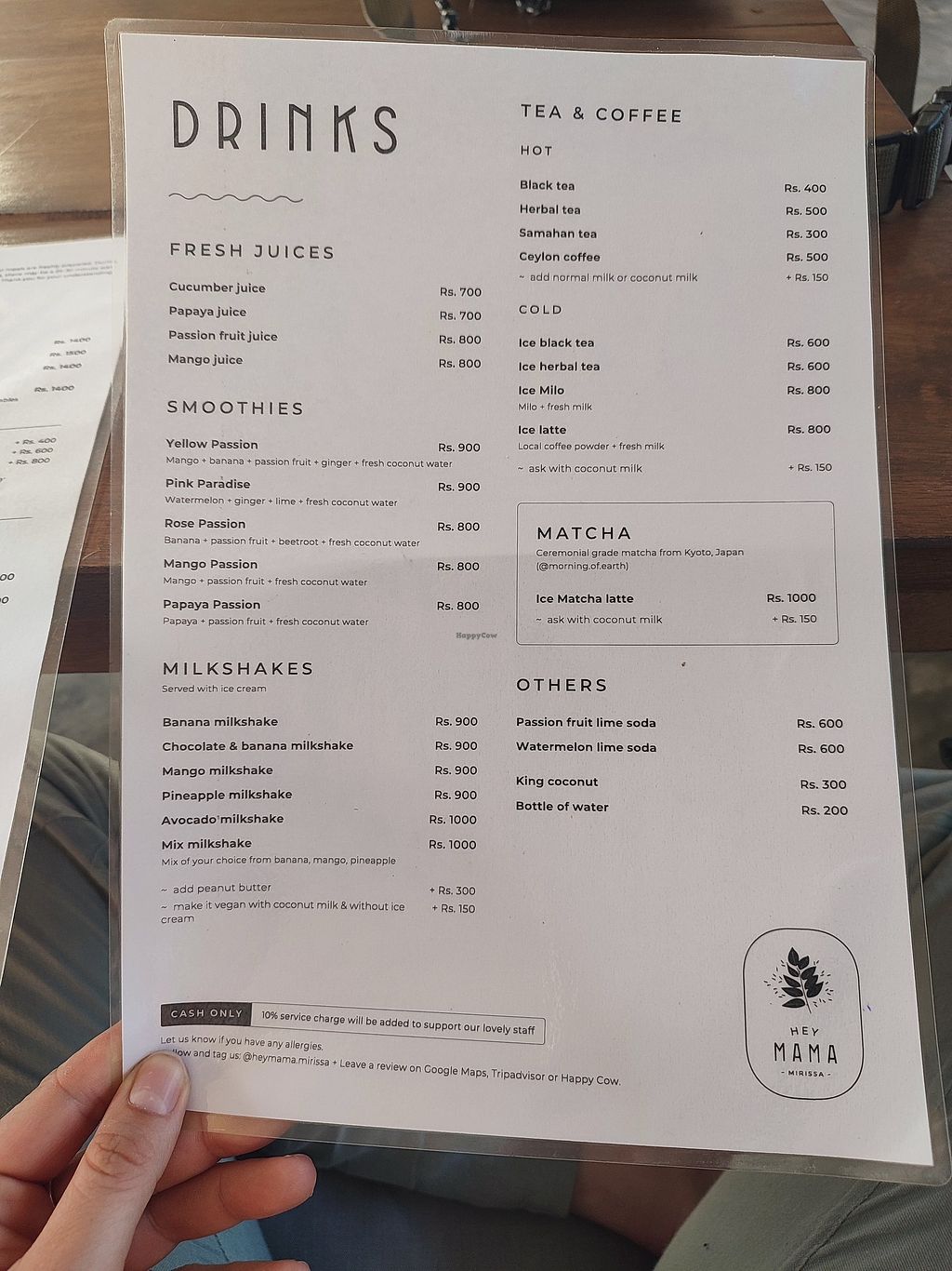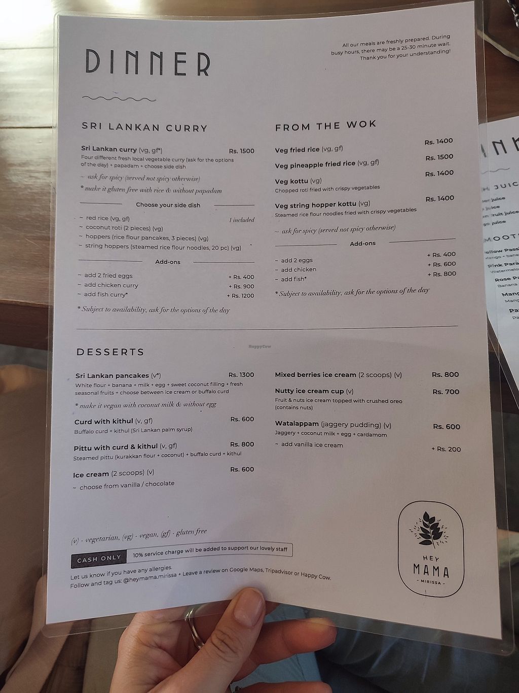 They serve breakfast, lunch and dinner and have Sri Lankan food as well as western food (like smoothie bowls, avocado toast, pancakes etc)