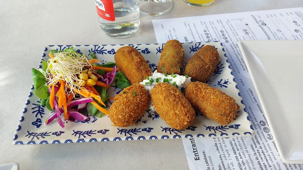 I loved my dinner here - the croquettas were amazing followed by the seitan cordon bleu with sliced potatoes which was like a proper homemade dinner. My husband had the heura which I tried and was also delicious. Pretty place too, good ambience.