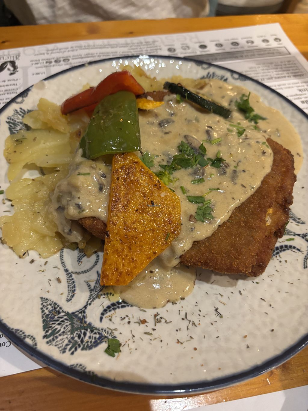 Read moreBut the mains (Cordon Bleu, Lasagne and Pad Thai) were really not good. Pad Thai was quite sweet, the Cordon Bleu was barely edible, the vegan cheese and Seiten that they used were just not good (though I have to say that the sides, so the sliced potatoes and veggies as well as the mushroom sauce were very good).
