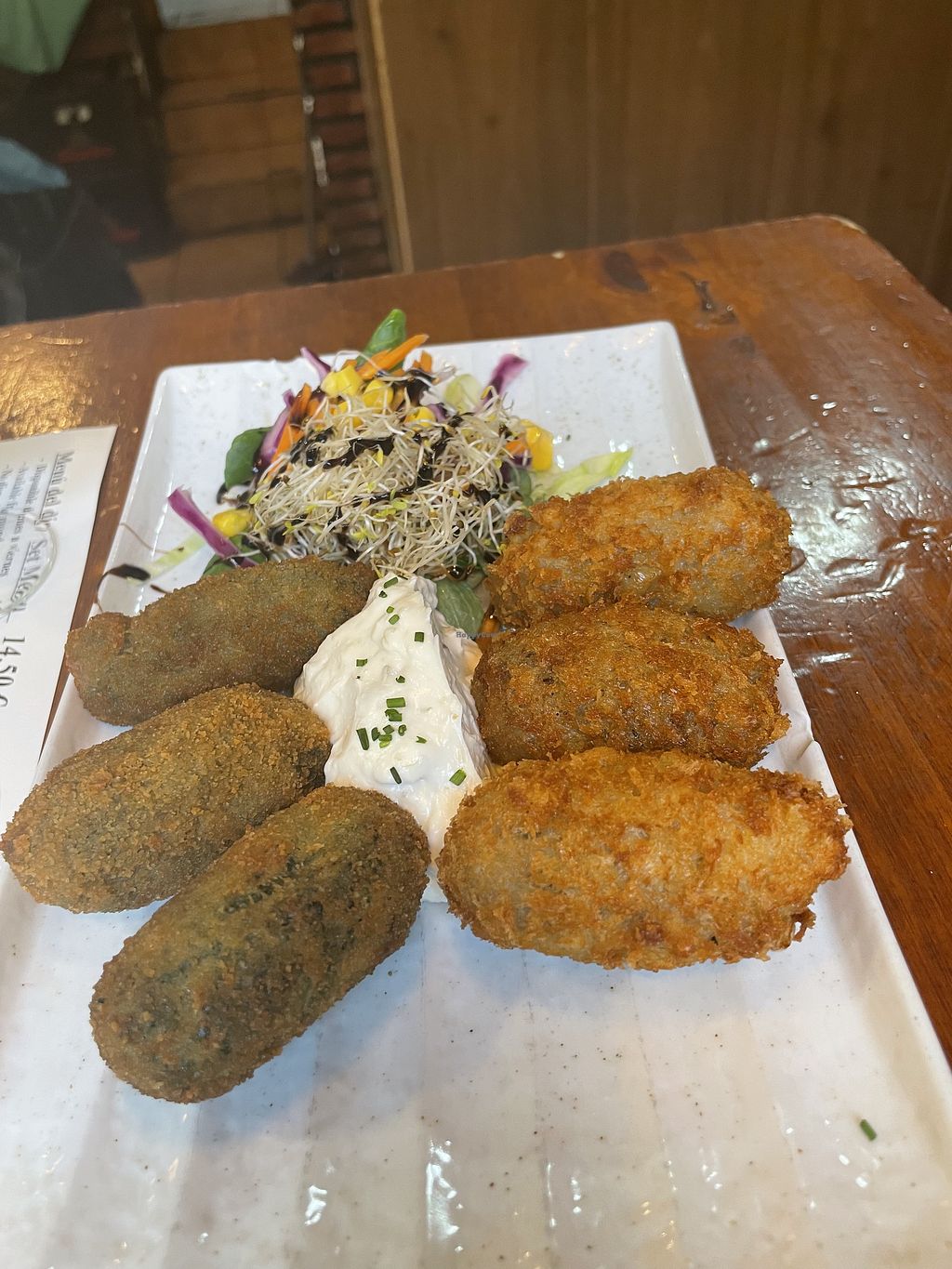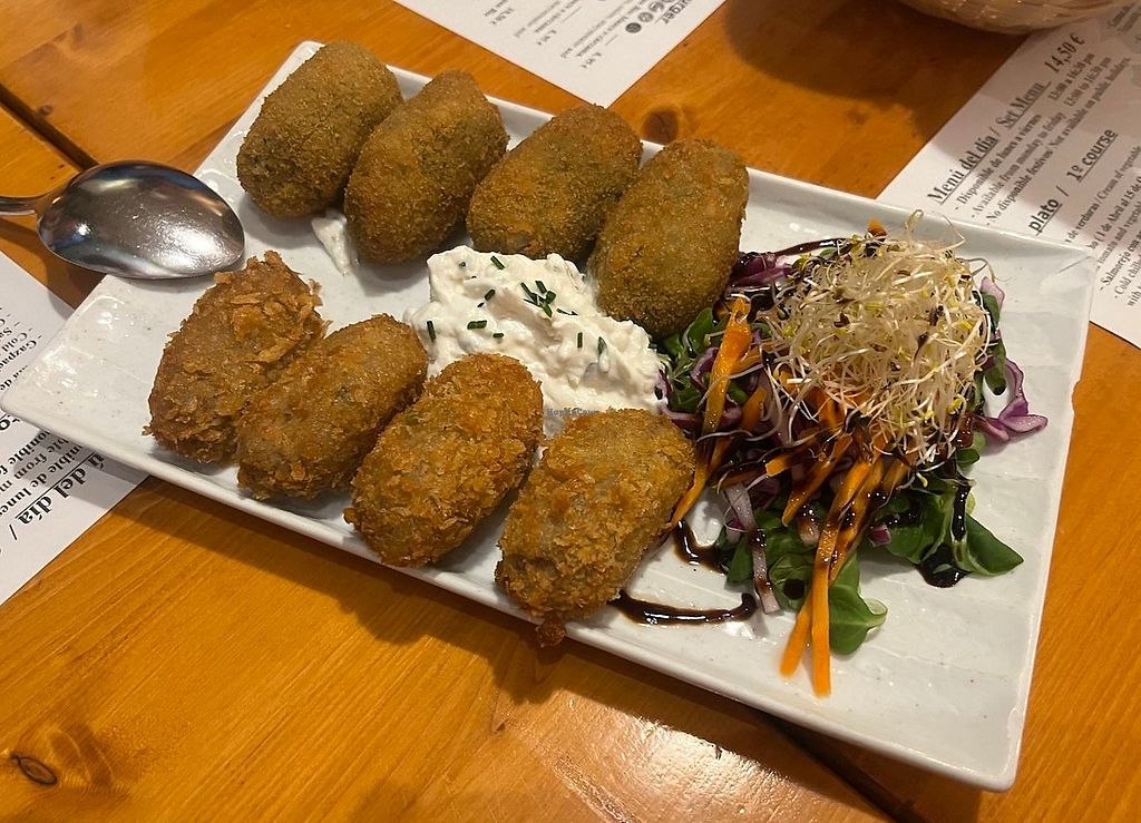 Read moreWe ordered the croquetes setas and espinaches as a starter. For the main course we ordered cordon blue and vegan lasagne and for desert we got tiramisu with almonds and a 3 layered chocolate cake.