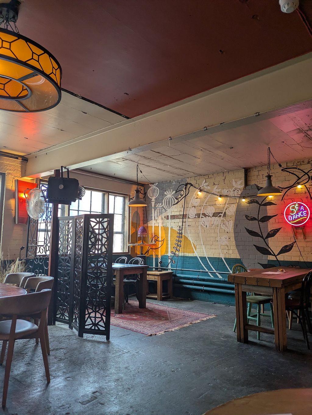 Friendly place, eclectic relaxed décor, great vegan food, will definitely visit again. We went on a Weds eve, when all food is 50% off, great deal.