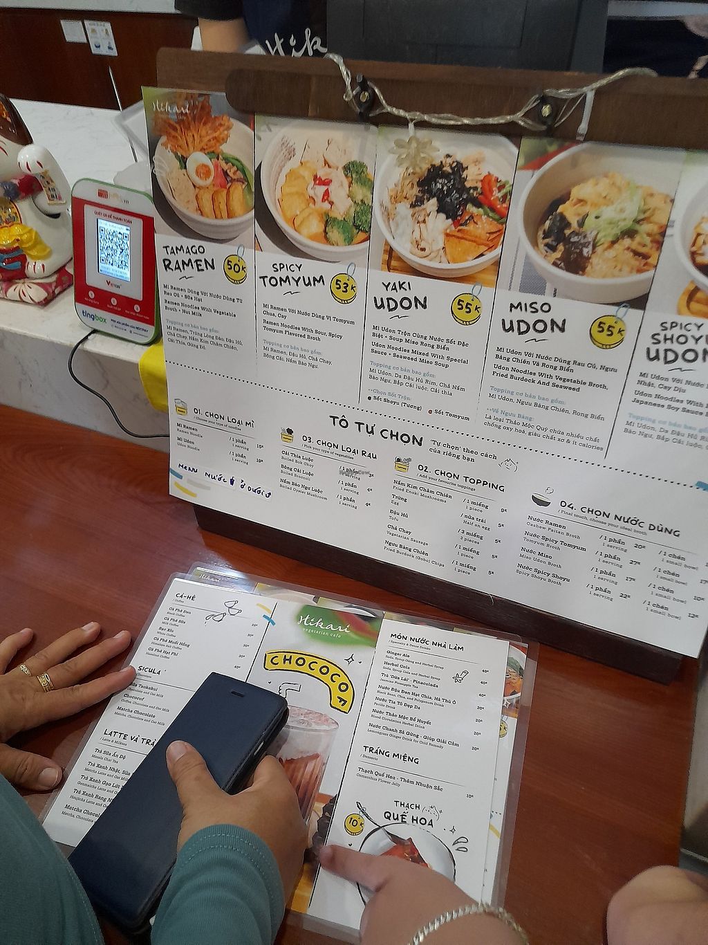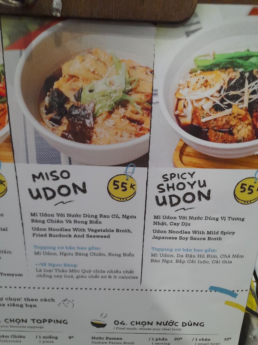 Brilliant vegan Japanese noodles. A good selection to choose from. Excellent prices too! Clean and modern interior. This place is vegetarian. So be careful my fellow vegans because they do use eggs and dairy. Tucked down a nice quiet wide hem. English is spoken. Menu is in Vietnamese and English.