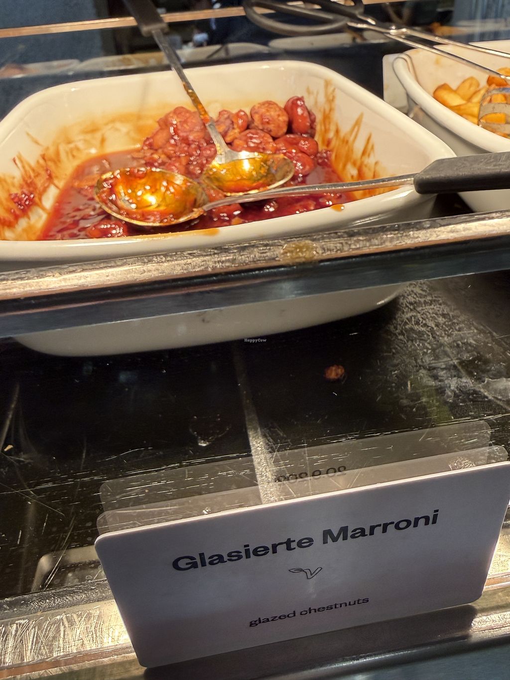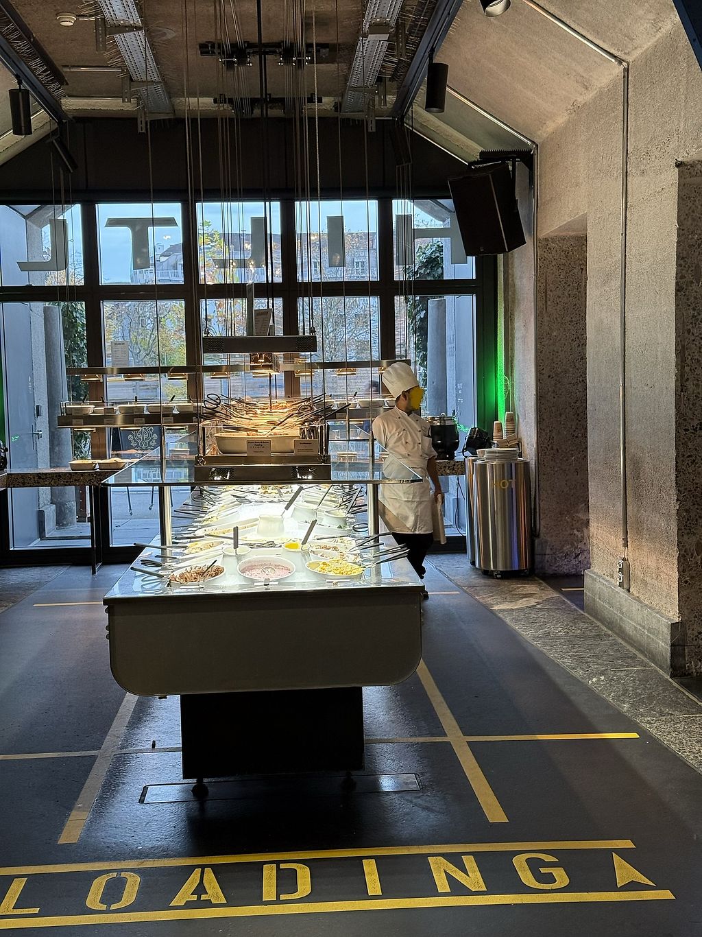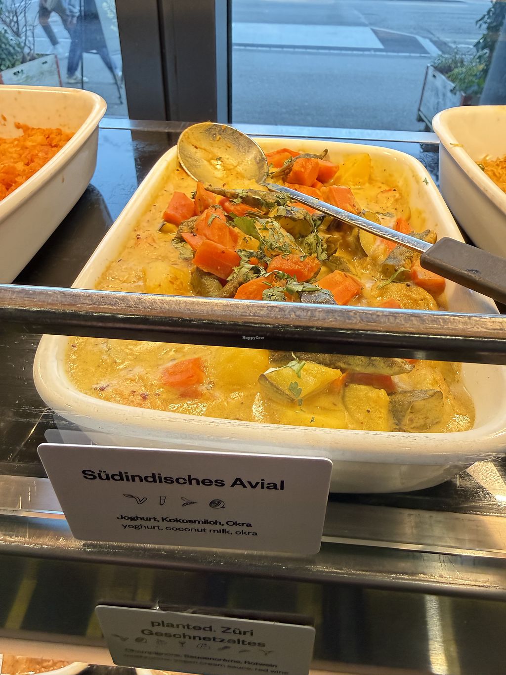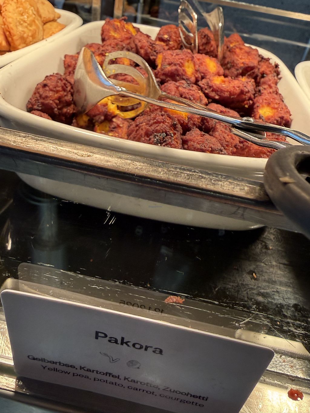 There is a lot of great tasting food in this buffet. There is a mix of dishes from Indian to Mediterranean to continental as well as a lot of salads. I really loved their artichoke-caper salad (and I grow artichokes in my garden, so I am picky about quality of artichokes in dishes). Yes, it's a bit expensive, but this is the kind of place to try out the creative or more expensive dishes (they had eggplant caviar, for instance) versus just to fill up, since it's pay-by-weight versus all-you-can-eat. The vegan dishes were mostly well-labeled, but a few (maybe 2 or 3 out of 70) labels (for the dishes) were either misplaced or incorrect, so be careful I do wish they were 100% vegan, versus just 100% vegetarian--they could easily go 100% vegan (and they did have vegan substitutes for some non-vegan but vegetarian items, such as a vegan egg salad--and, yes, I know not everyone likes vegan cheese...yet). It's worth going--and expect to pay around 25 Swiss francs for a full plate of food.
