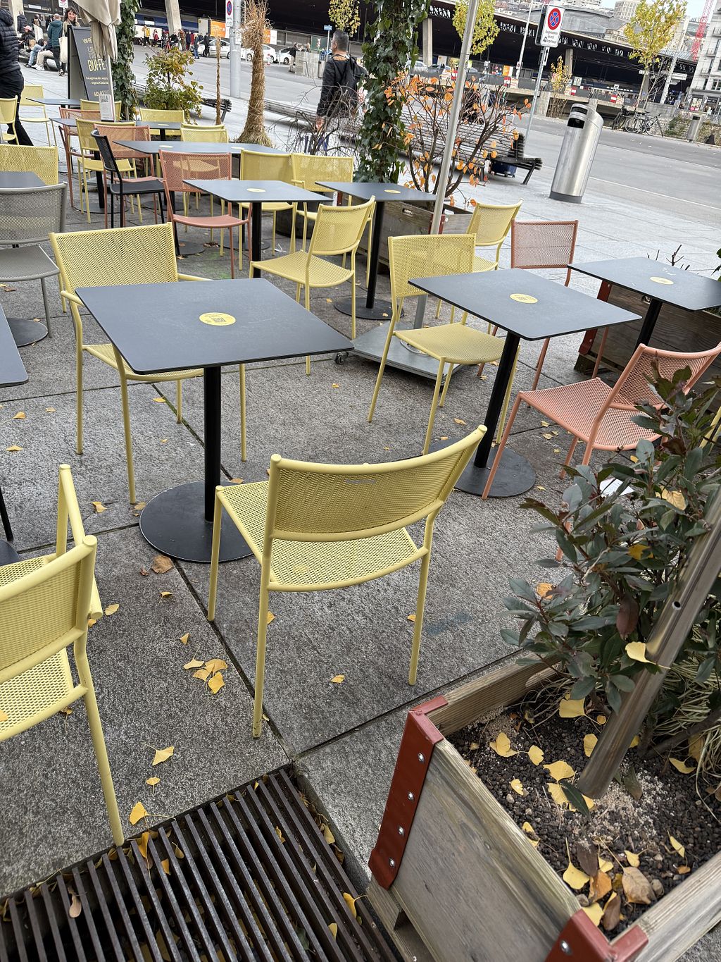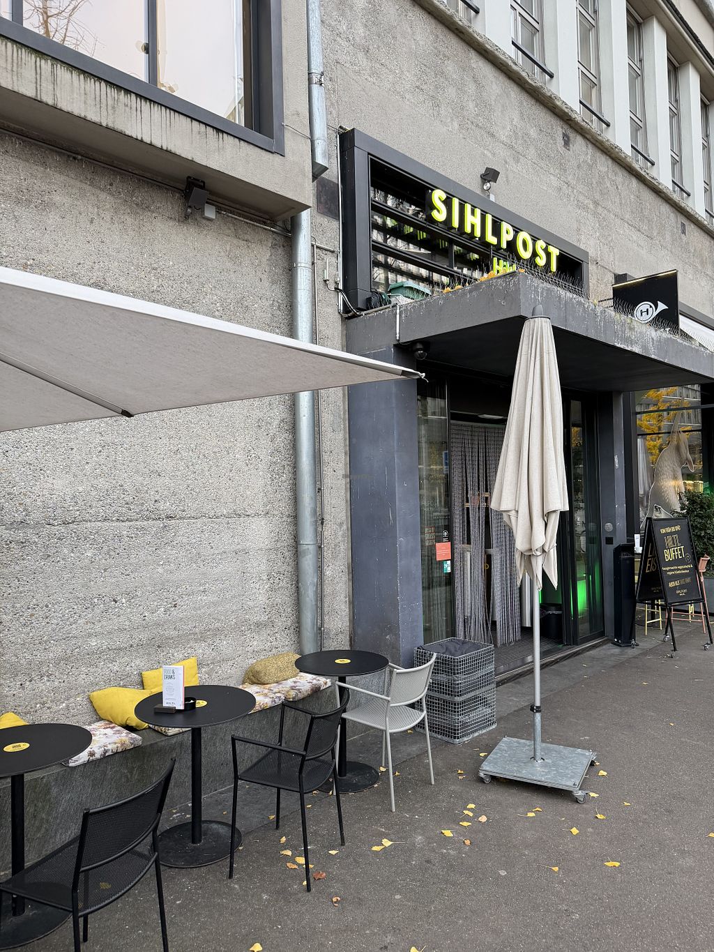 Conveniently located a short walk away from the side entrance of the central train station, direction of the main postal office. Friendly environment, friendly staff, good food. Please be very careful coz sometimes items are not vegan but vegetarian; this is clearly labeled but it is not always intuitive (potatoes!) — so better read the signs. Large space; they do have seats outside. Do not mix up the location with another Hiltl location close by which has no outside sitting on the street but is kind of a roof terrace. Both locations are more or less the same. This one here is on street level and probably a little larger.