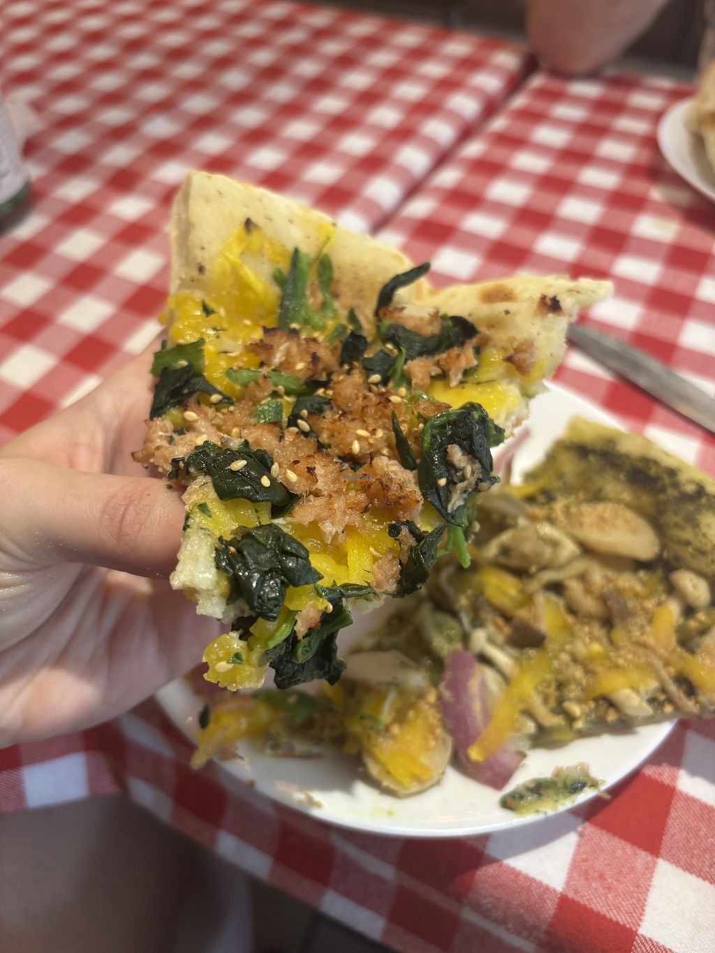 The highlight was the pesto slice and salted croissant, the pizza wasn’t super fresh which I don’t mind but some others might not like. Cafe is cute.