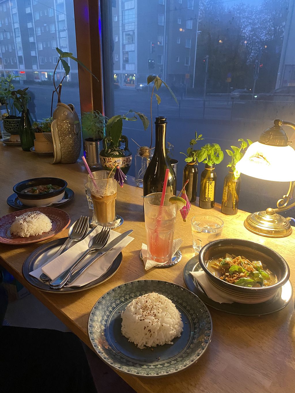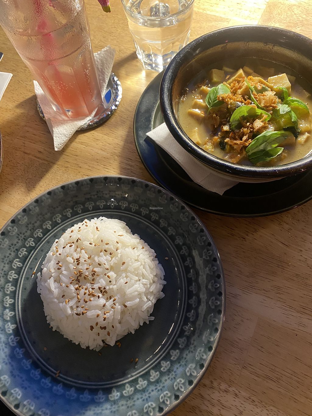 This place only has a few tables and a small kitchen with one person working. Customer service was really friendly and they were so polite and welcoming. We had cocktails which all could’ve done vegan as well. They were really tasty!! For food we both ordered vegan green curry with tofu. It was delicious. I highly recommend this restaurant but prepare to wait for your table.