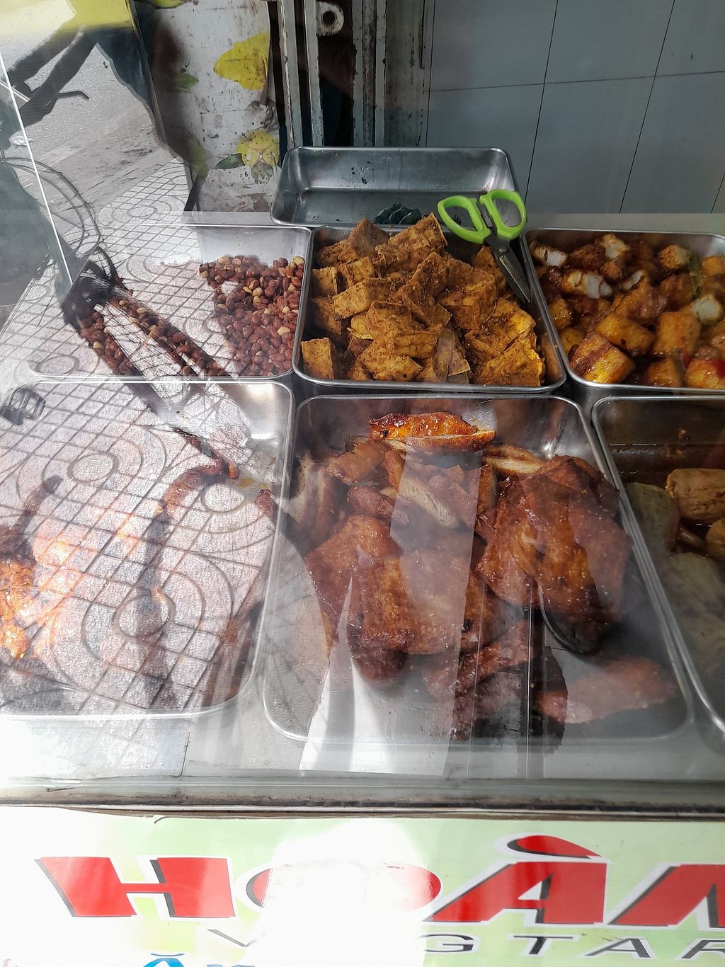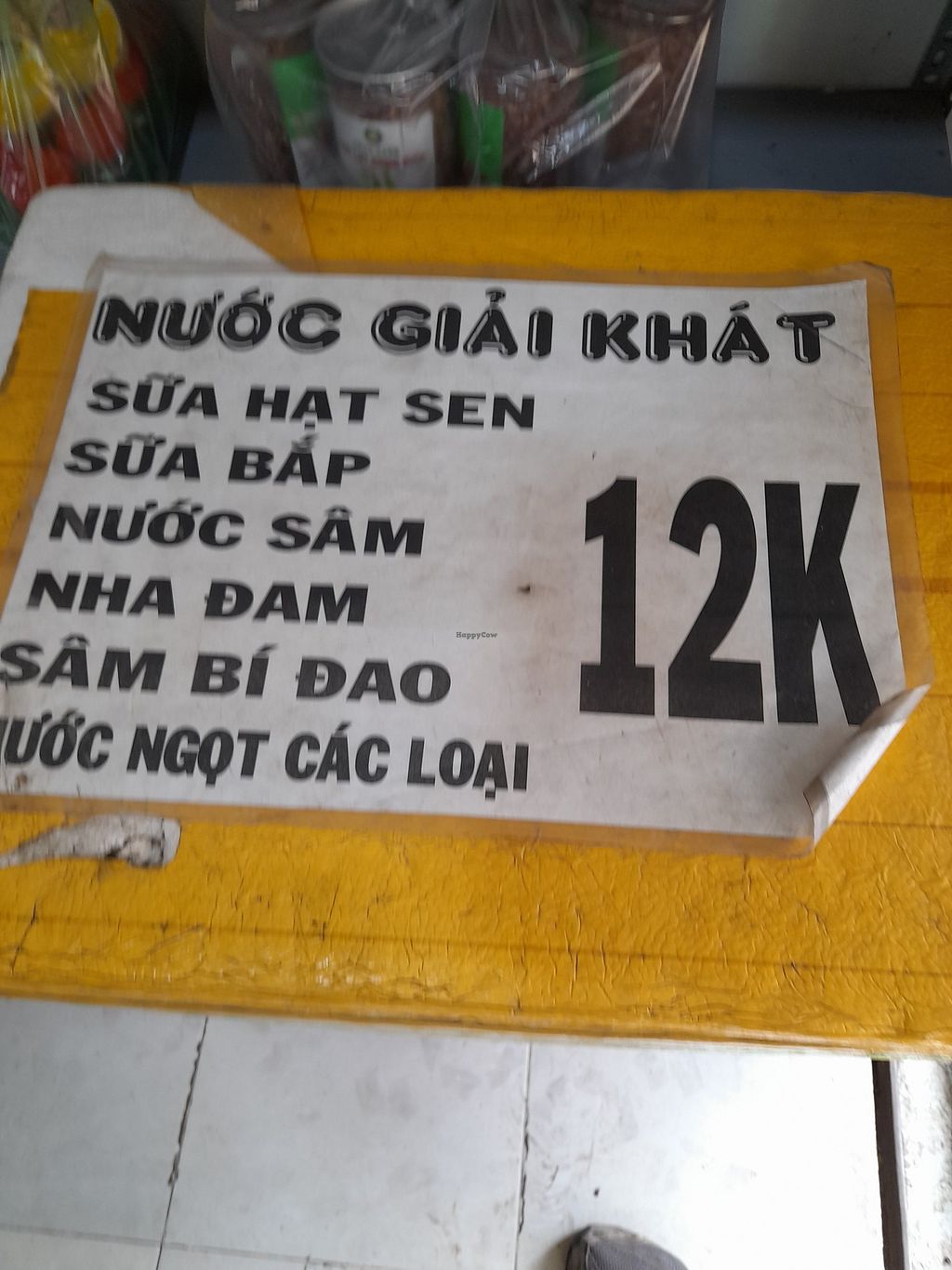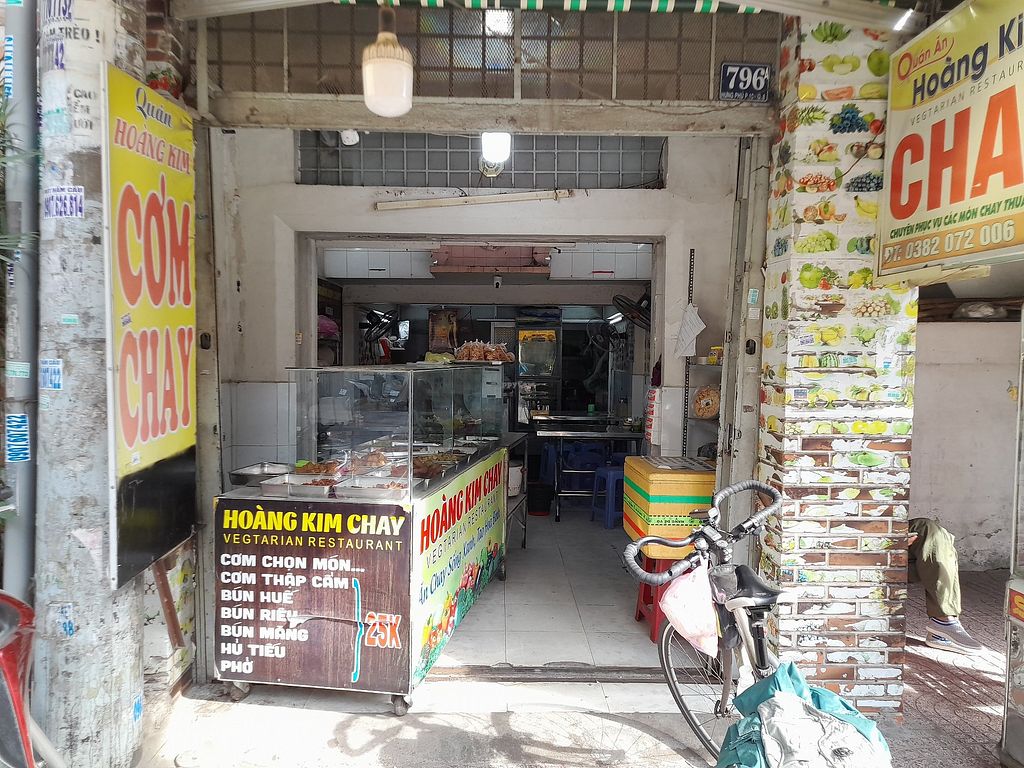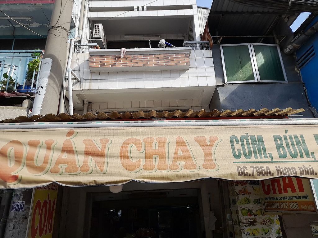 A local, fully vegan Vietnamese restaurant serving mostly com chay and some freshly cooked foods from a menu on the wall. Also sells plant-based milks like corn milk and nut milks. No English spoken and no menu in English. Customer points to com chay selection choices. Has limited seating inside. Open Mon-Sun 6:00am-8:00pm.