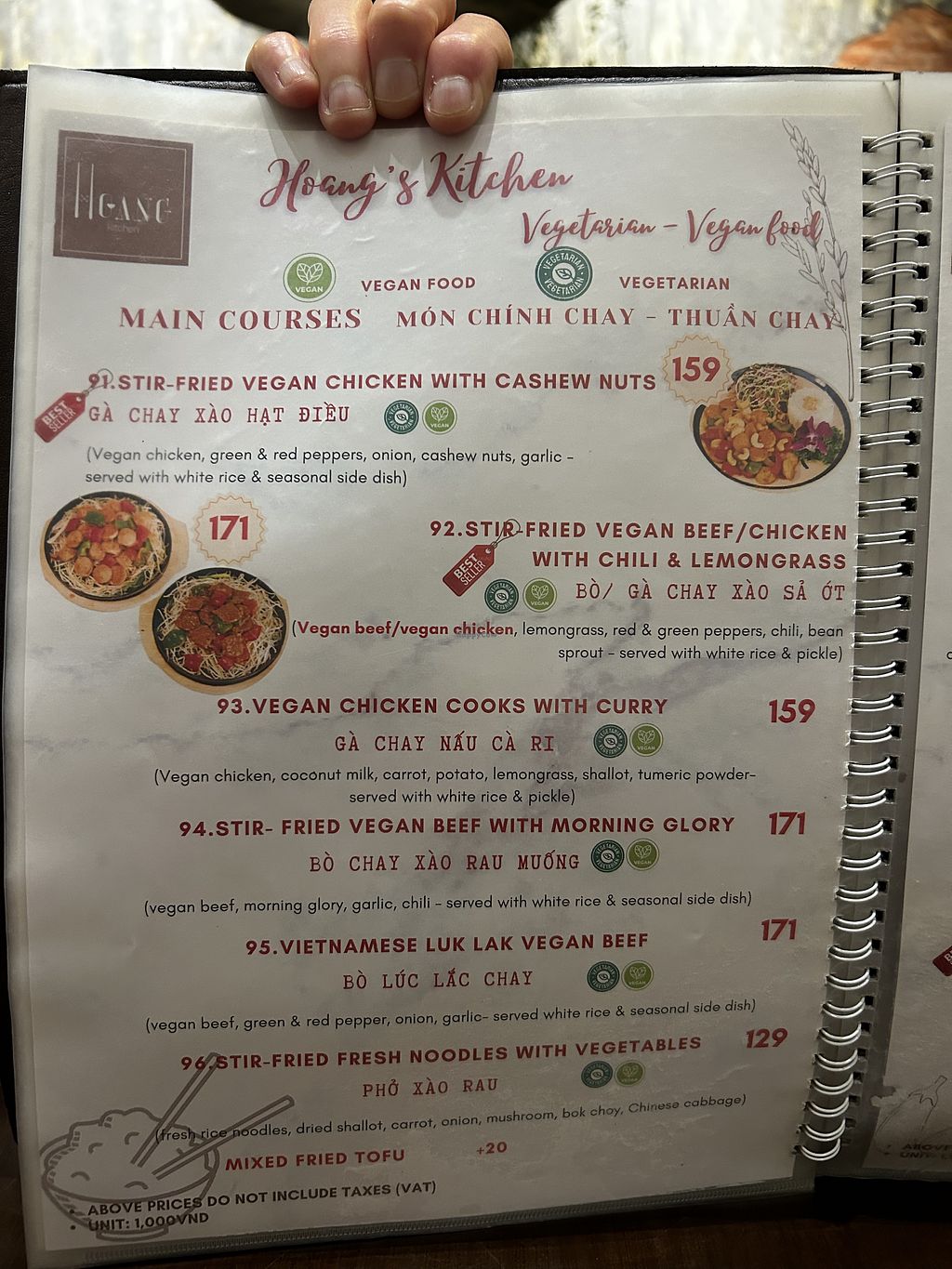 Loved there were clearly marked vegan options (on main sign outside too). Veg, tofu and mock meat options. Had the vegan beef and tasted lovely, very fresh.
