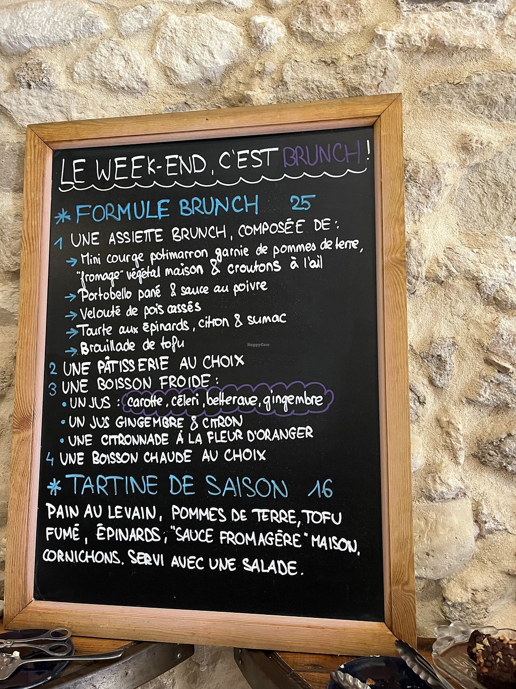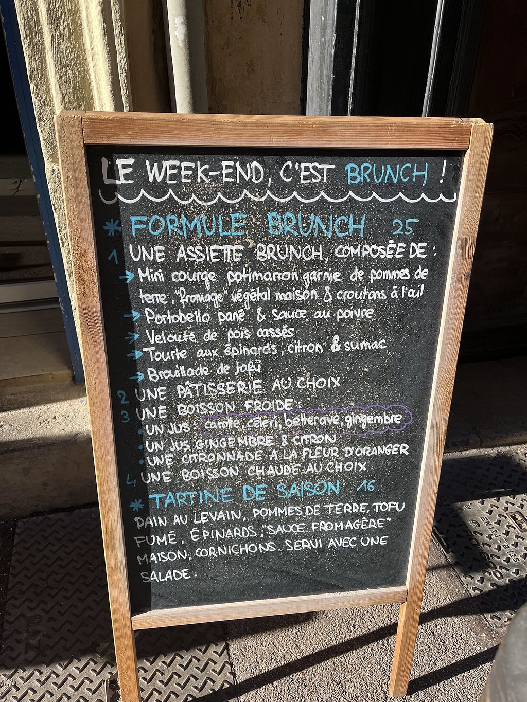 Wohl das schmackhafteste vegane Restaurant in der ganzen Provence. Wechselnde Karte mit tollen Gerichten und Desserts. Vier Dinge auf der Karte reichen für zwei Personen bei großem Hunger (ohne Nachtisch).