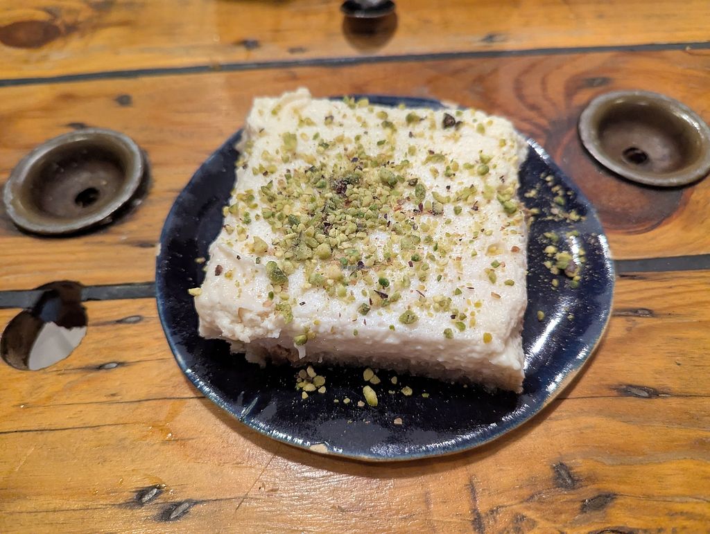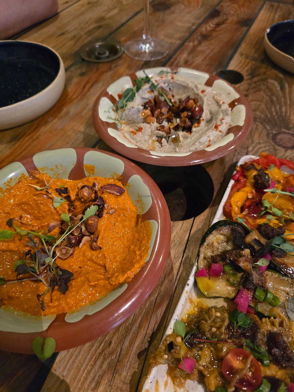 La carte est d'inspiration libanaise, avec pour la majeure partie les mezzés habituels (mais pas uniquement). On a pris la majorité des choix de la carte car nous étions 3. Tous étaient très bons, notamment le muhammara (purée de poivrons et noix), très parfumé. On a trouvé que c'était de la cuisine de qualité. Et la personne au service était très accueillante et impliquée.
