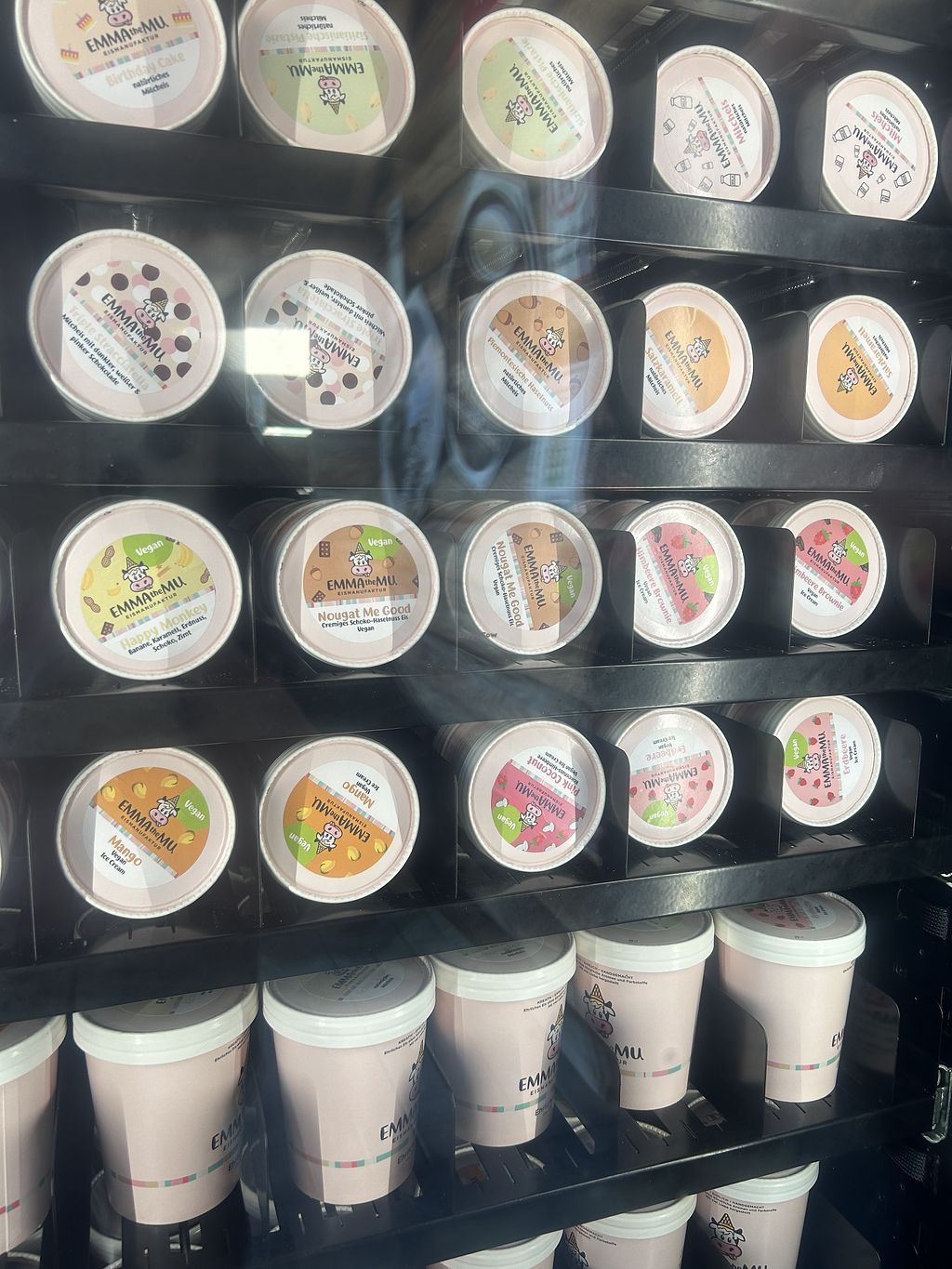 Eisbecher mit veganen Eissorten aus dem Verkaufsautomaten - Edit