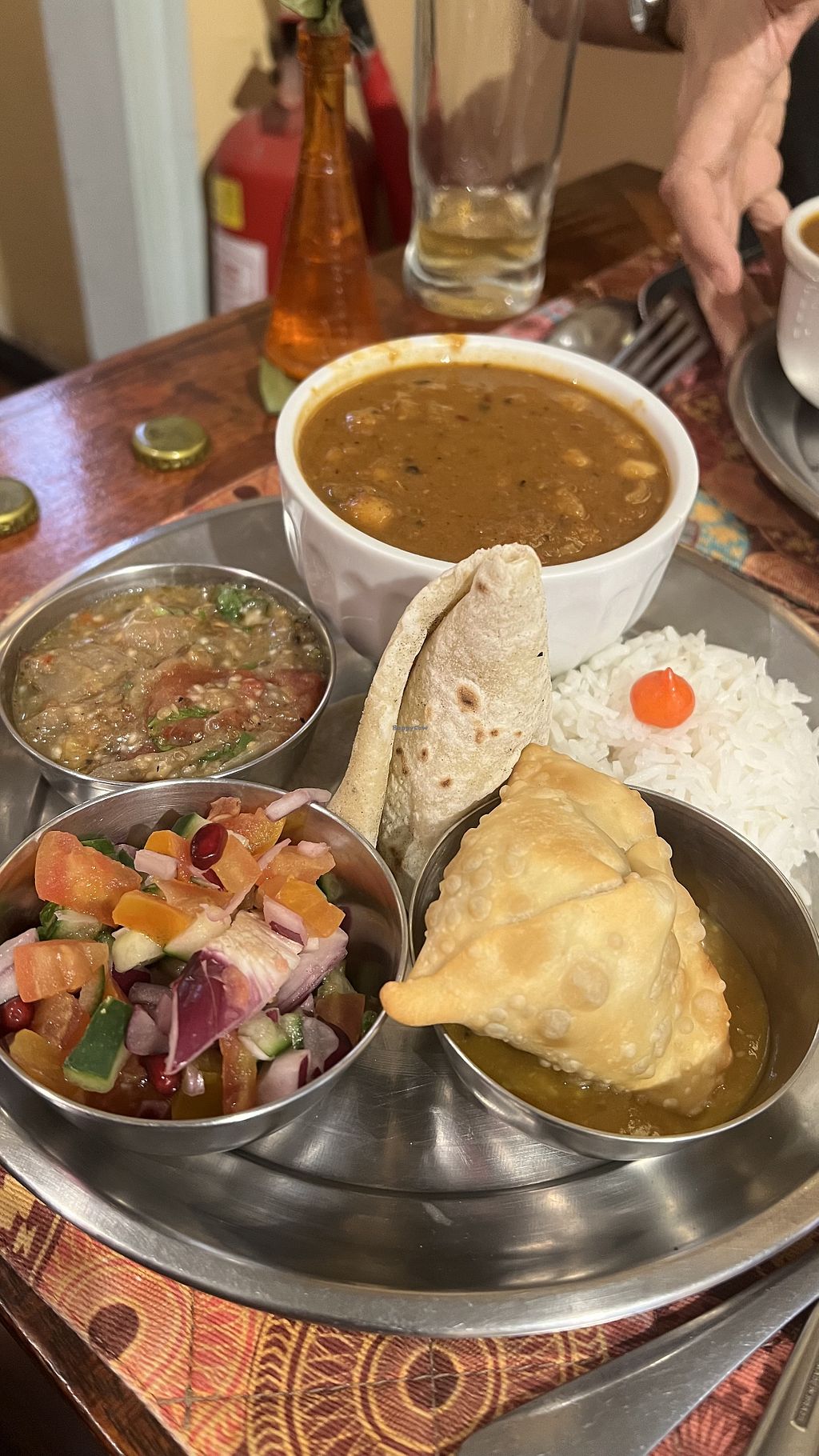 The vegetable curry tasted like a bland vegetable soup, the dhal tasted like a very bland lentil soup, the samosas have the dough of pastel and not real samosas. It was very disappointing.