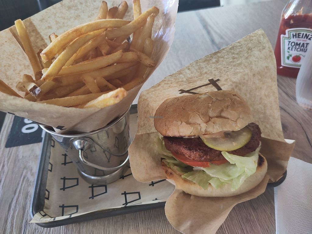 Read morePros: Classic vegan burger, Fries