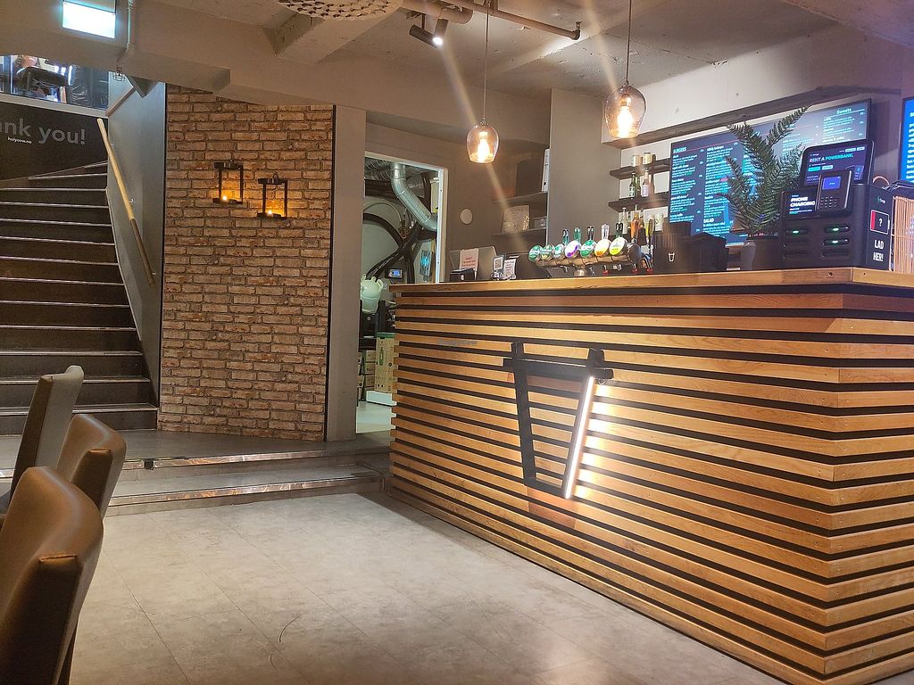 This is my fav spot for burgers in Bergen. Located inside galleriet mall, but downstairs you will find a cozy bar and more seating. All sauces can be made vegan - even the cheese sauce, and you can choose between beyond burger or a beet burger. Nice for take away also.