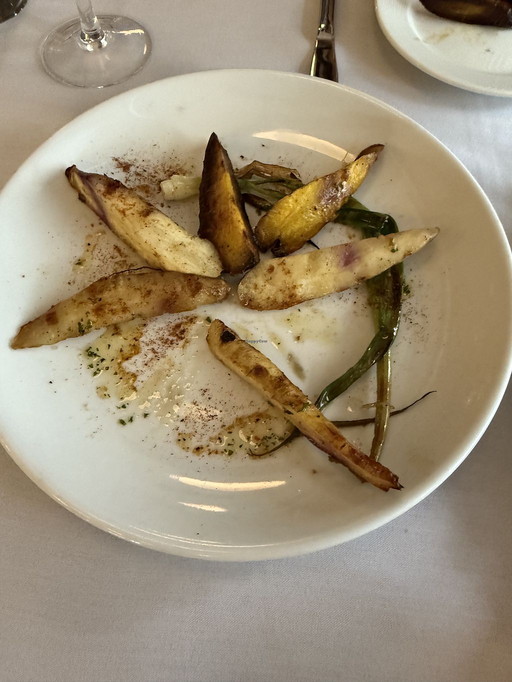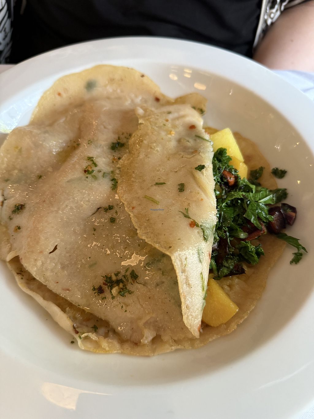 A couple of good vegan options here. I had the tomato bisque and the vegetarian crepe. Both were made vegan just by asking. Ended with some peach sorbet. Not a lot of vegan options but the ones they had were really tasty.