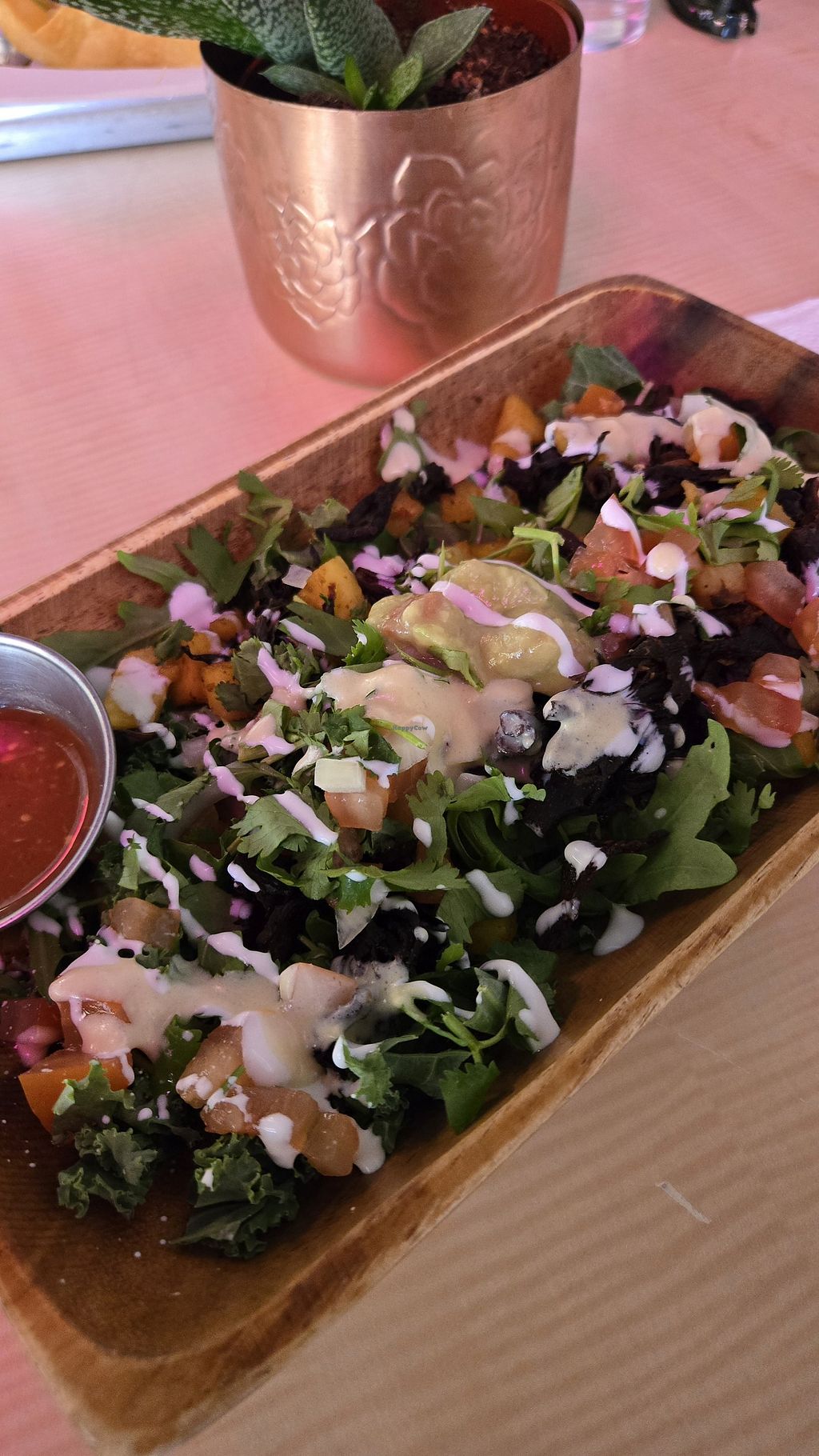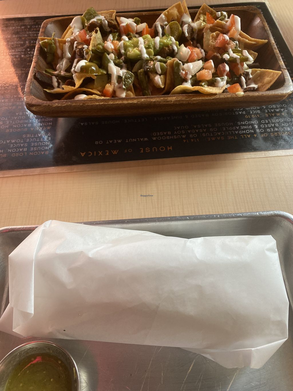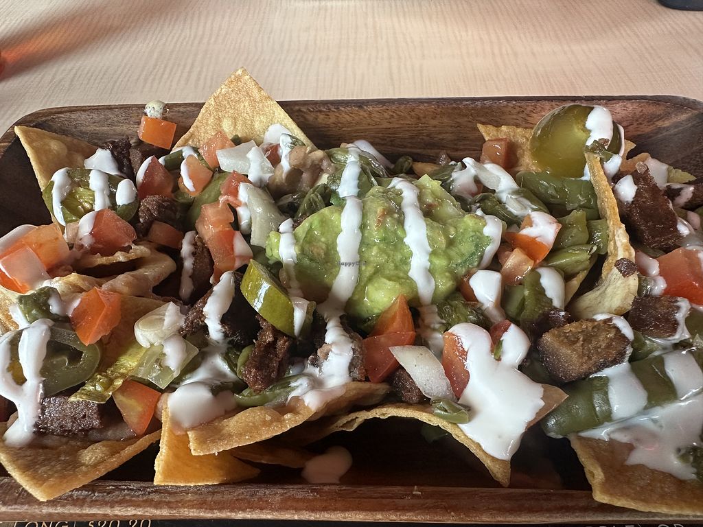 So glad we stopped in today and that we have a vegan spot to come to in town! My wife and I shared the burrito (mushroom/walnut meat), nachos (asada and nohpalli) and fish tacos. Everything was so good, but those fish tacos were, chef’s kiss.