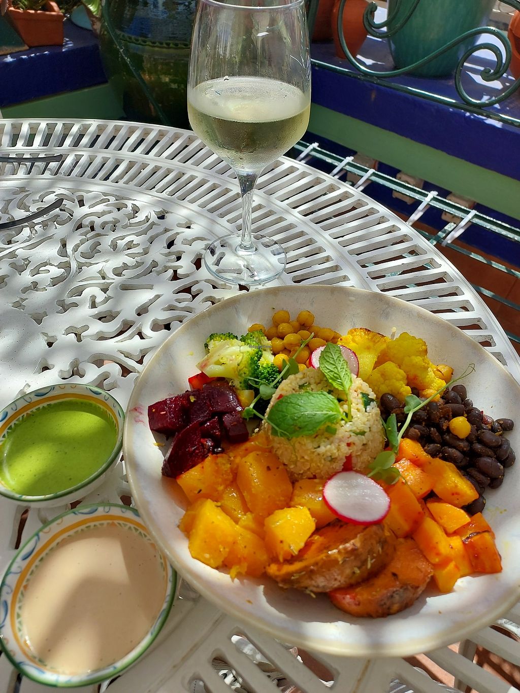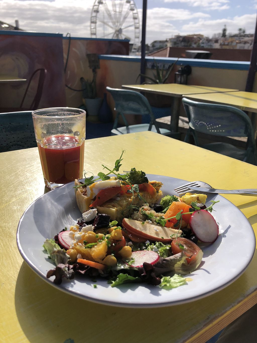 An unexpected find in the Centre of Cascais. Fully vegetarian, with vegan and gluten free options. Food is selected from a visual menu and the staff were very knowledgeable about allergens etc. Nice coffees and desserts too. Lots of different seating areas including a roof top terrace and outside, shaded terrace.