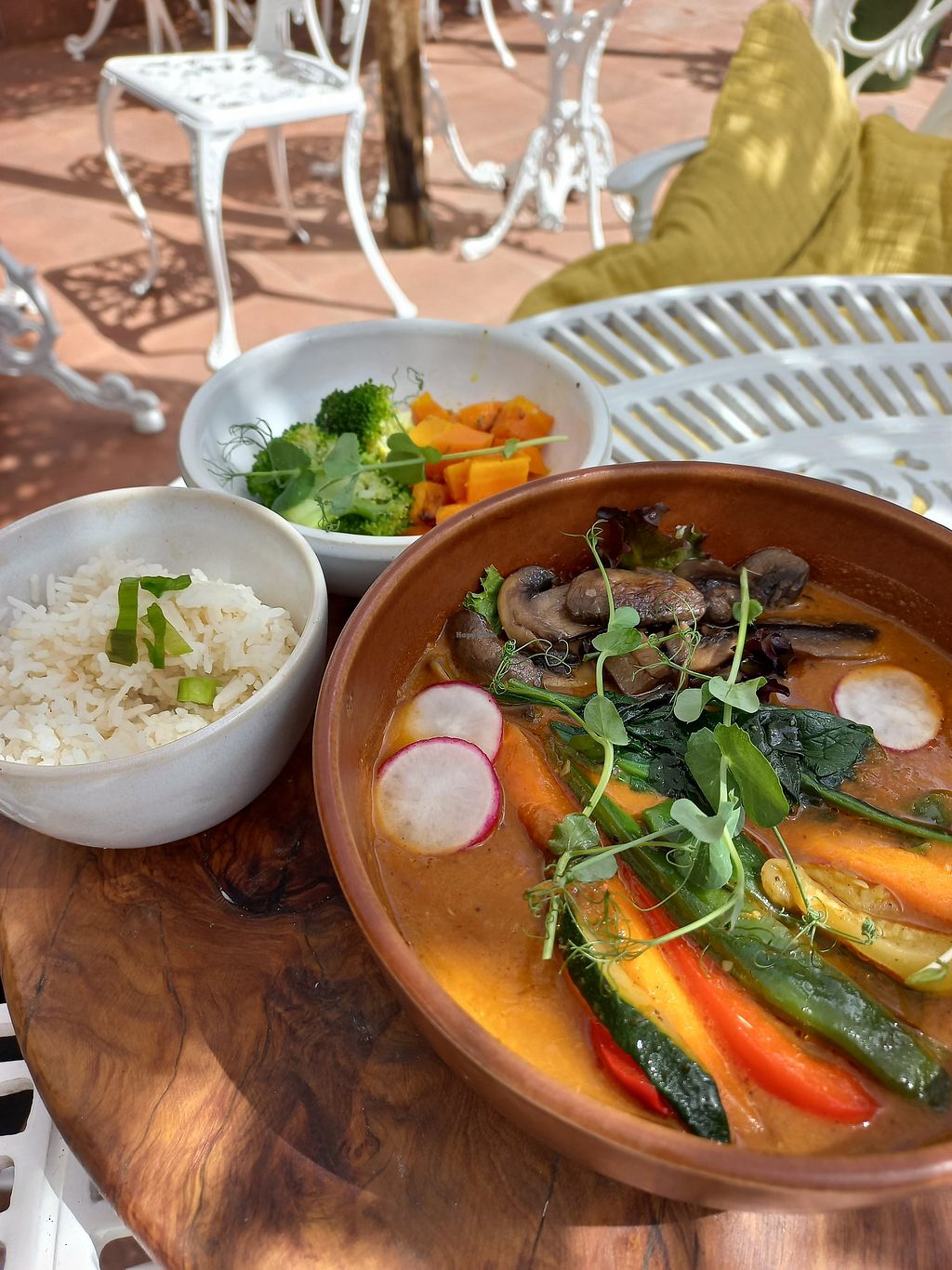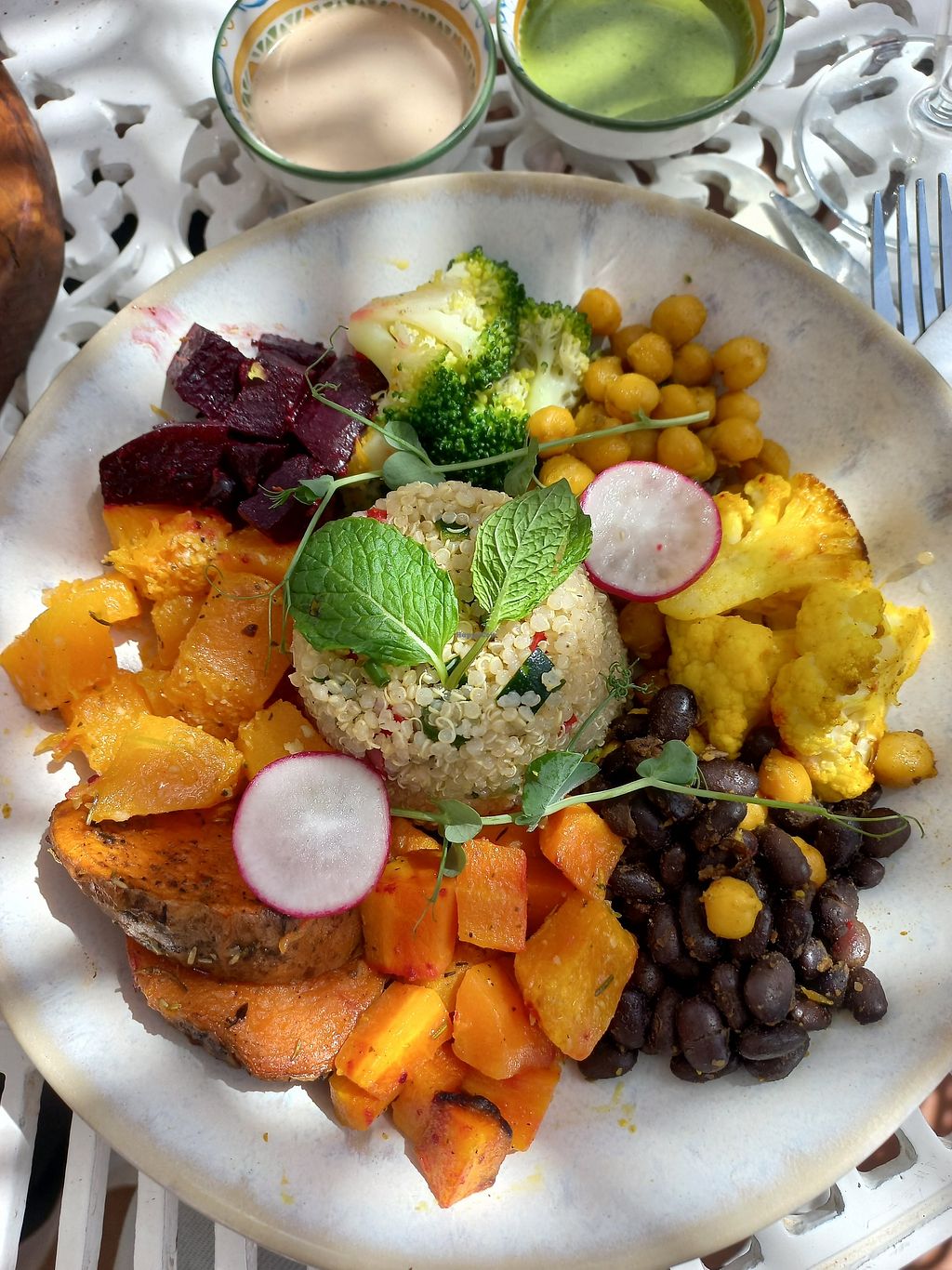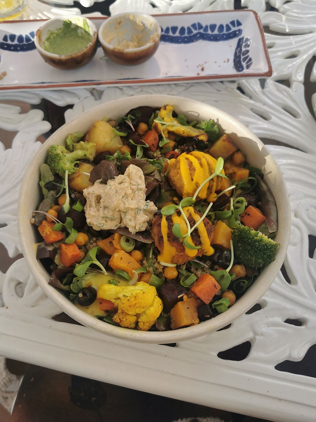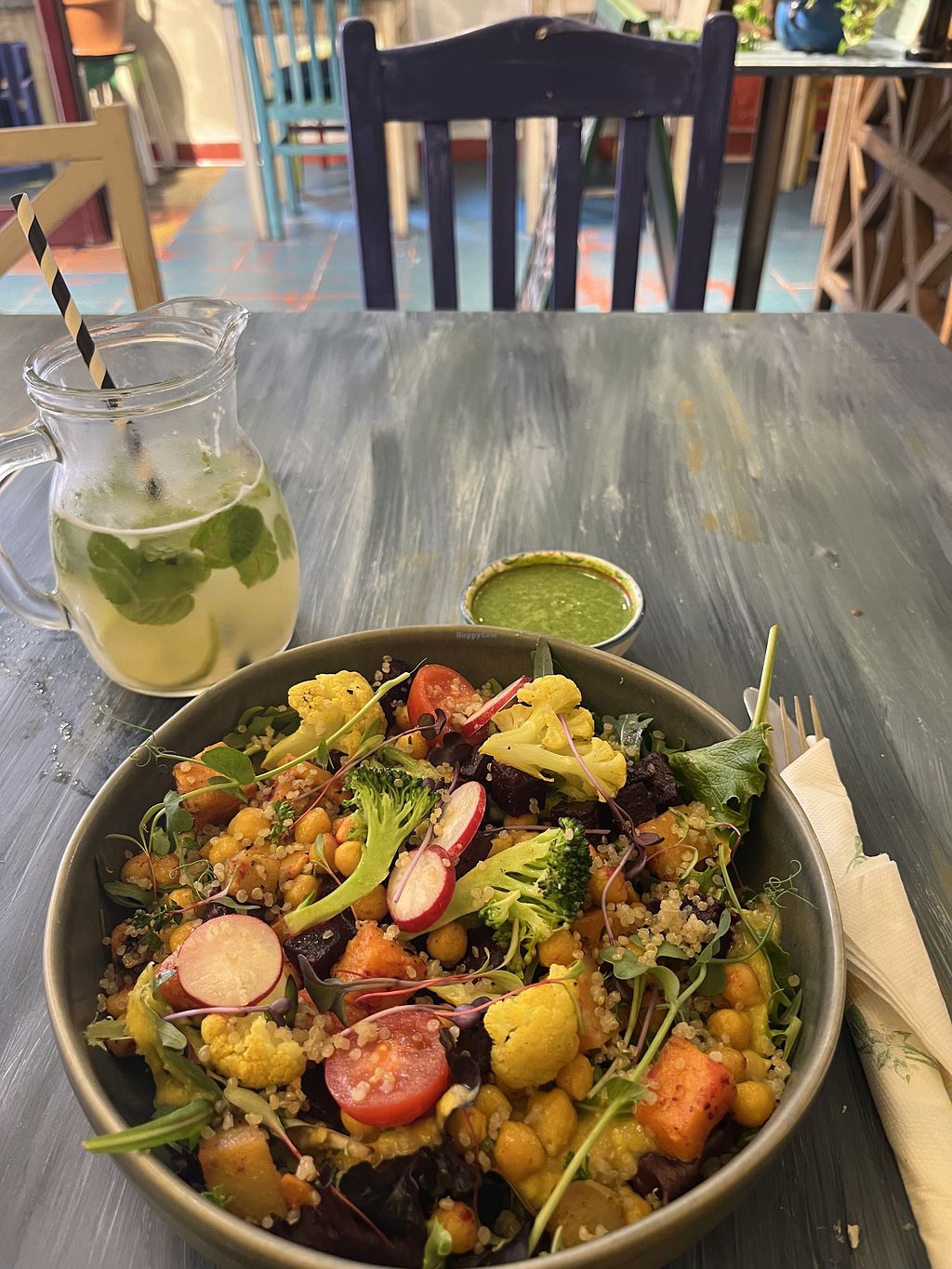 Great restaurant, with a lovely vibe and ambience. A Visual Menu of dished up choices laid out in entrance is clever, with a mix of both vegan and vegetarians options on display.