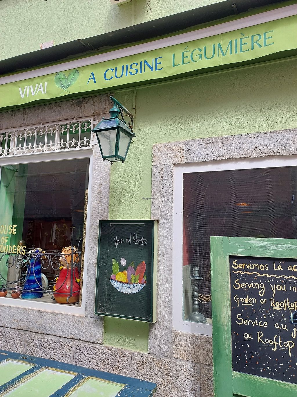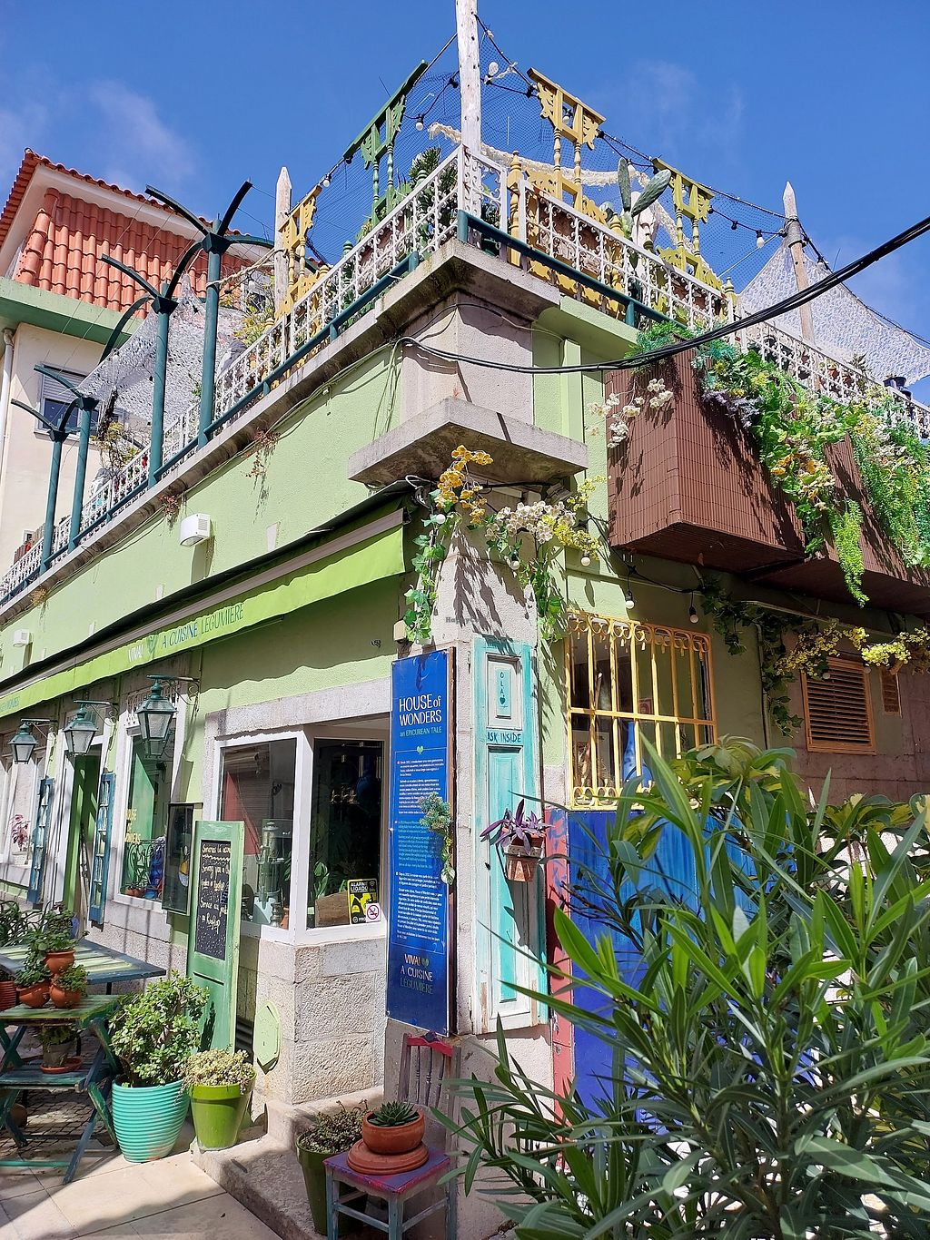 Mezze-based menu plus juices and smoothies, pastries, raw vegan desserts, non-dairy milks. This cafe and galeria features rooftop with sea view in the centre of Cascais, up a multiple flights of steep stairs. Free Wi-Fi. Also sells hand-crafted goods and furniture. NOTE: may use non-vegetarian cheese - please confirm. Open Mon-Sun 08:00-22:00.