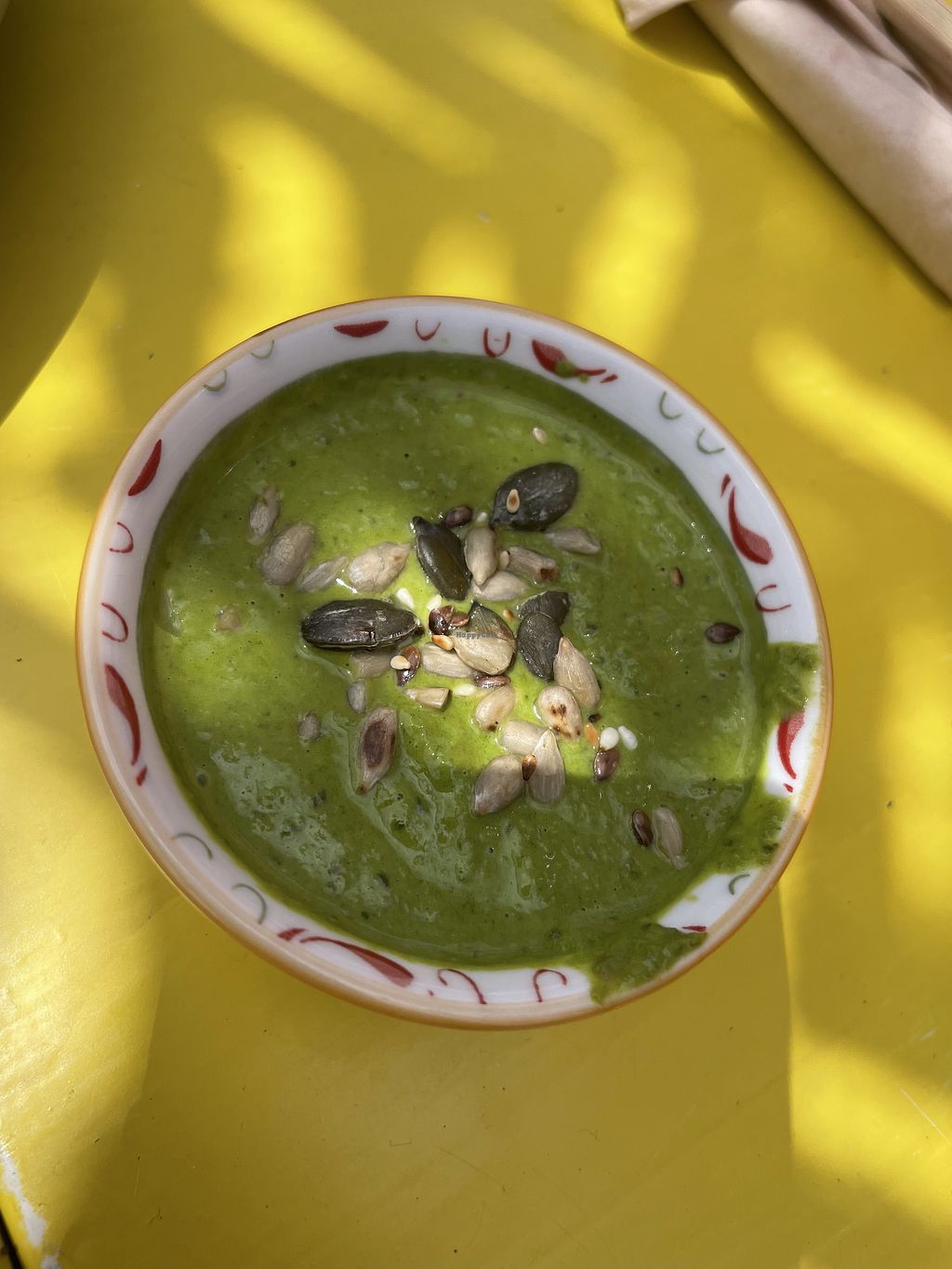 Passed by just for a snack. Took the green juice and a slice of blueberry and almond cake. Both very good