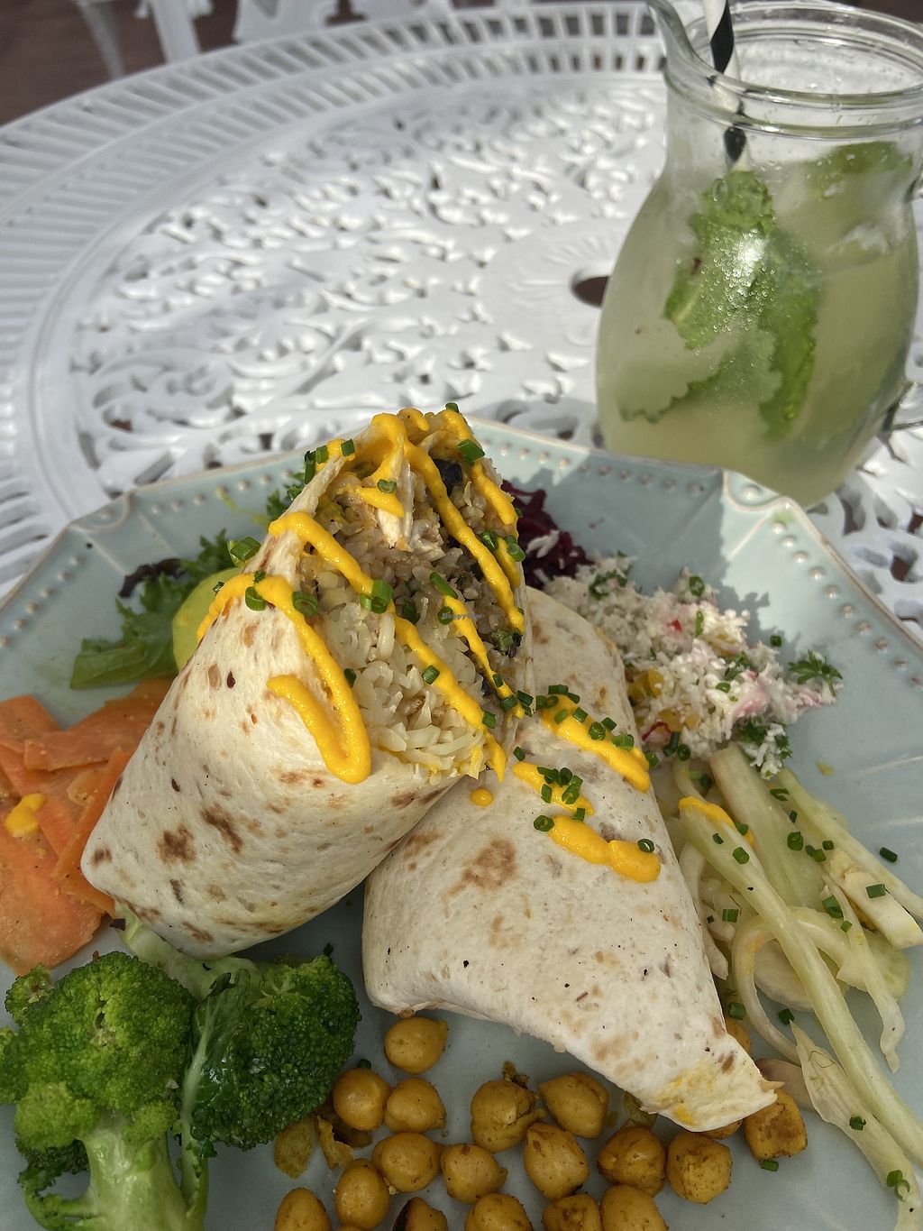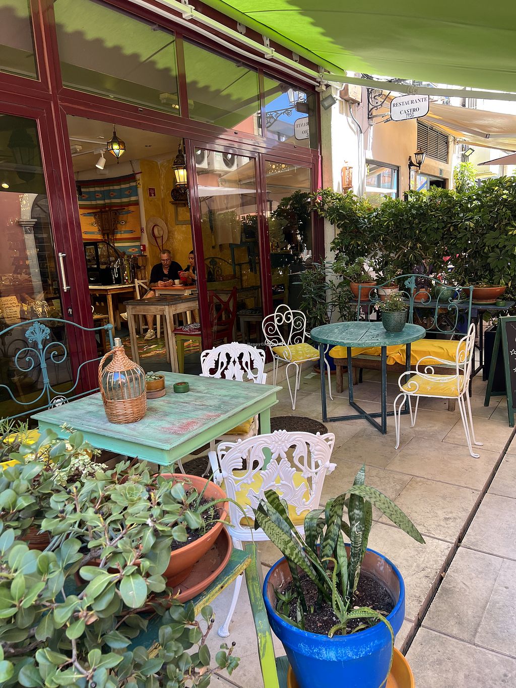 Location is perfect, food is fresh, colorful, and delicious and location is beautiful. Don’t miss the sangria! Plus, they have gf vegan options.