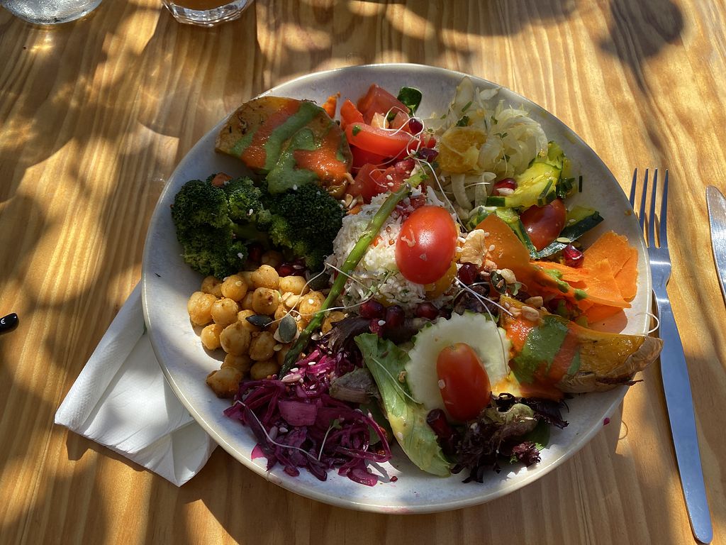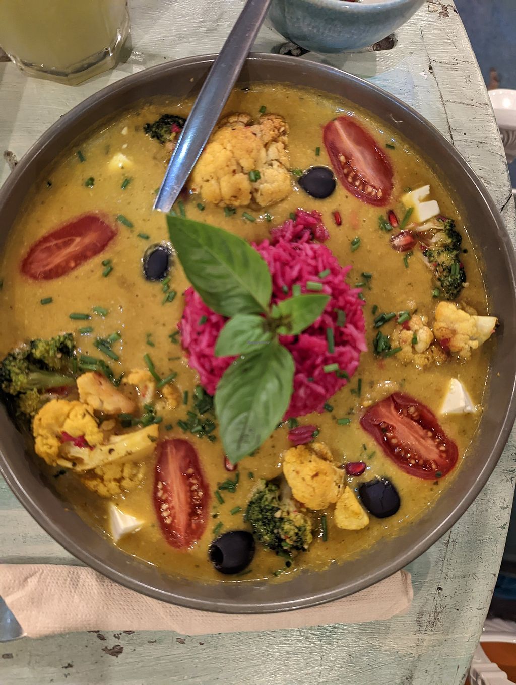 Read moreWe went twice in one day. We had the green salad with rice & bean burrito, portobello, stuffed pepper, Buddha bowl, lentil stew and curry. We haven’t been disappointed. Every dish has so much color and variety it’s like art.