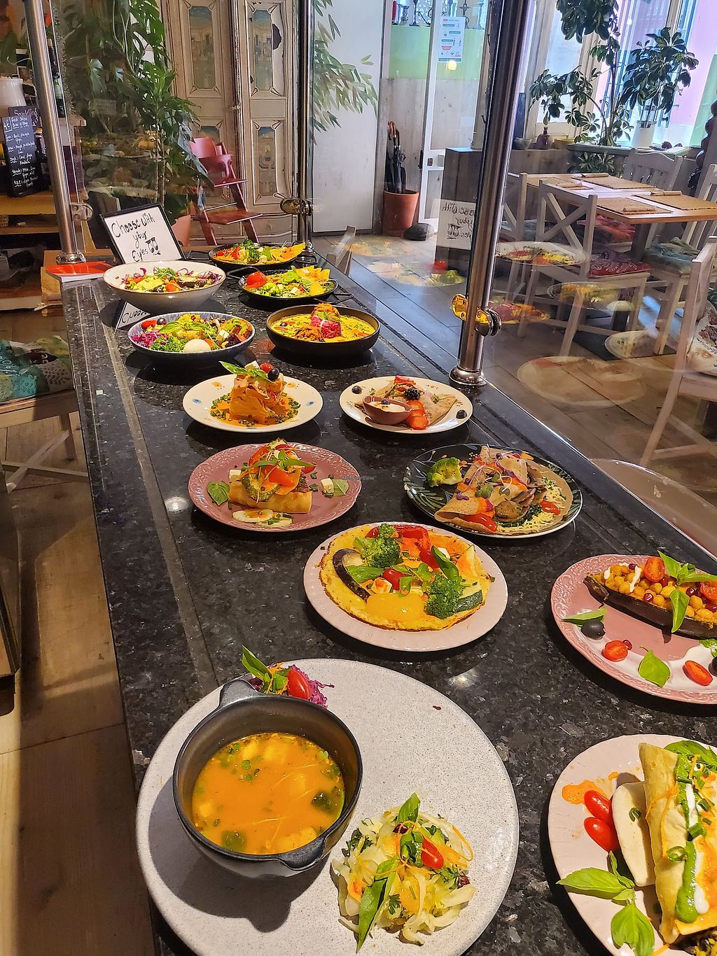 A completely vegetarian restaurant with vegan meals as well as meals that can be made vegan. All dishes are showed on a table in the restaurant where you need to order as well. The staff was really nice and explained the dishes to me. There vegan main dishes cold and warm, vegan drinks qs well as vegan desserts :)