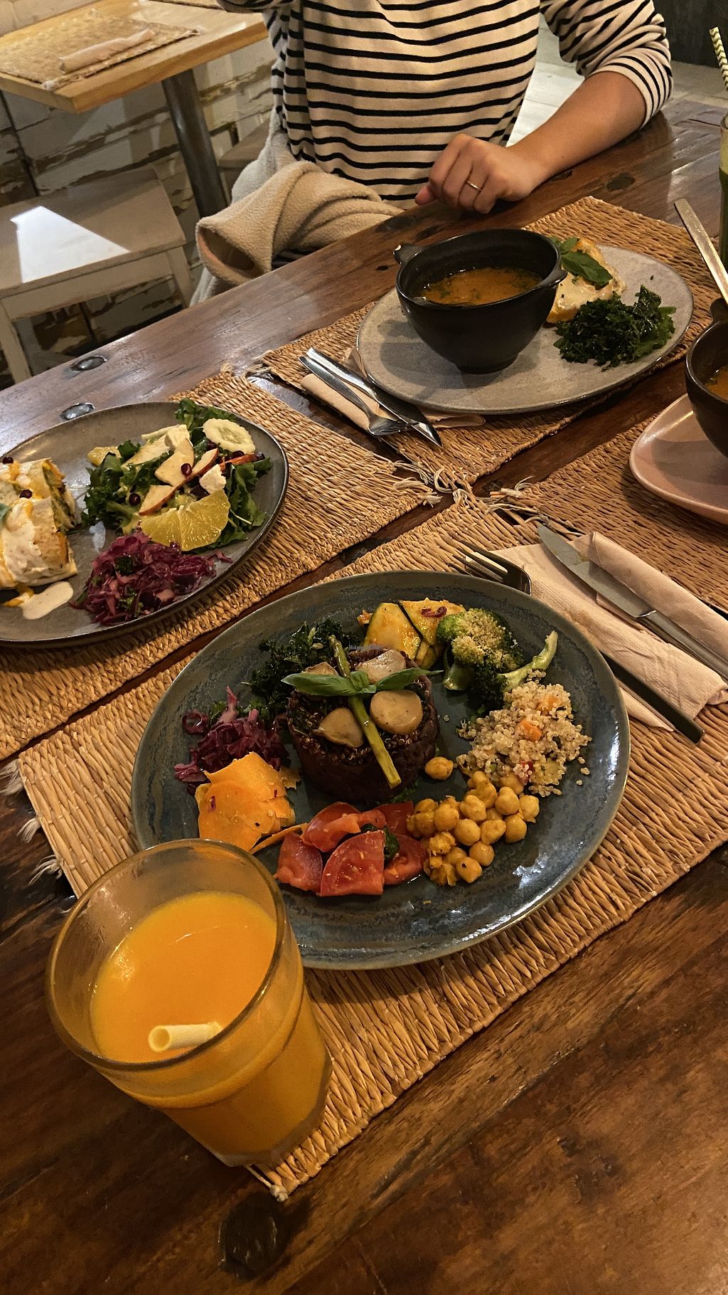 This place is special! I have eaten at a lot of vegetarian restaurants around the world. I’ve never experienced anything like this place. You don’t select your meal from a menu. They have every single dish available that day made up as sample dishes. The menu changes from day to day, depending on what vegetables are in season and available. You stand in front of a huge table with all of the dishes spread out on it and somebody explains every dish to you. You can mix-and-match mains and side dishes. They are absolutely beautiful! It’s almost impossible to choose. There are lots of vegan options or they can veganize the vegetarian options. I am gluten-free and there was also a lot of gluten-free options. I was just visiting Cascais for the day. But I’m already trying to figure out how to get back one more time before I leave Portugal to eat at this restaurant again. I went with 3 meateaters, and they absolutely loved the food and said it’s the best vegetarian food they’ve ever had.
