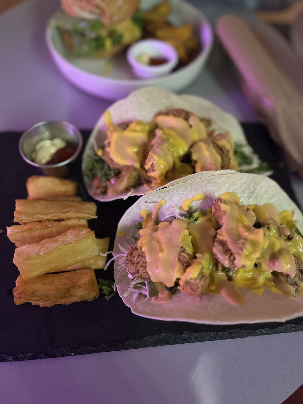 I was so excited to try this place, not sure if we got unlucky but the food was not good. Got the no fish tacos and oyster mushroom burger. The fried mushrooms in both were really overdone, they tasted burnt and there was zero mushroom flavour. Expected much higher standard for the price. The only saving grace was the yuca fries.