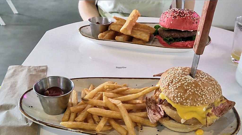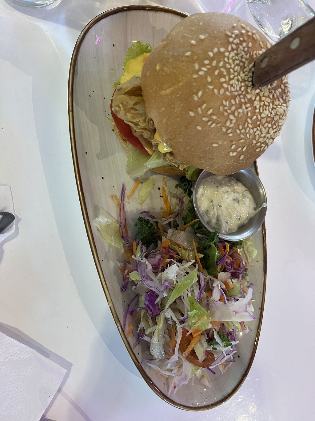 We both had the 'chicken' burger. It was pretty good although a little disappointed by the cheese - stingy and a bit tasteless. The wedges and dip were nice. Overall a decent meal and I know its a nicer area but felt it didn't really justify the price tag.