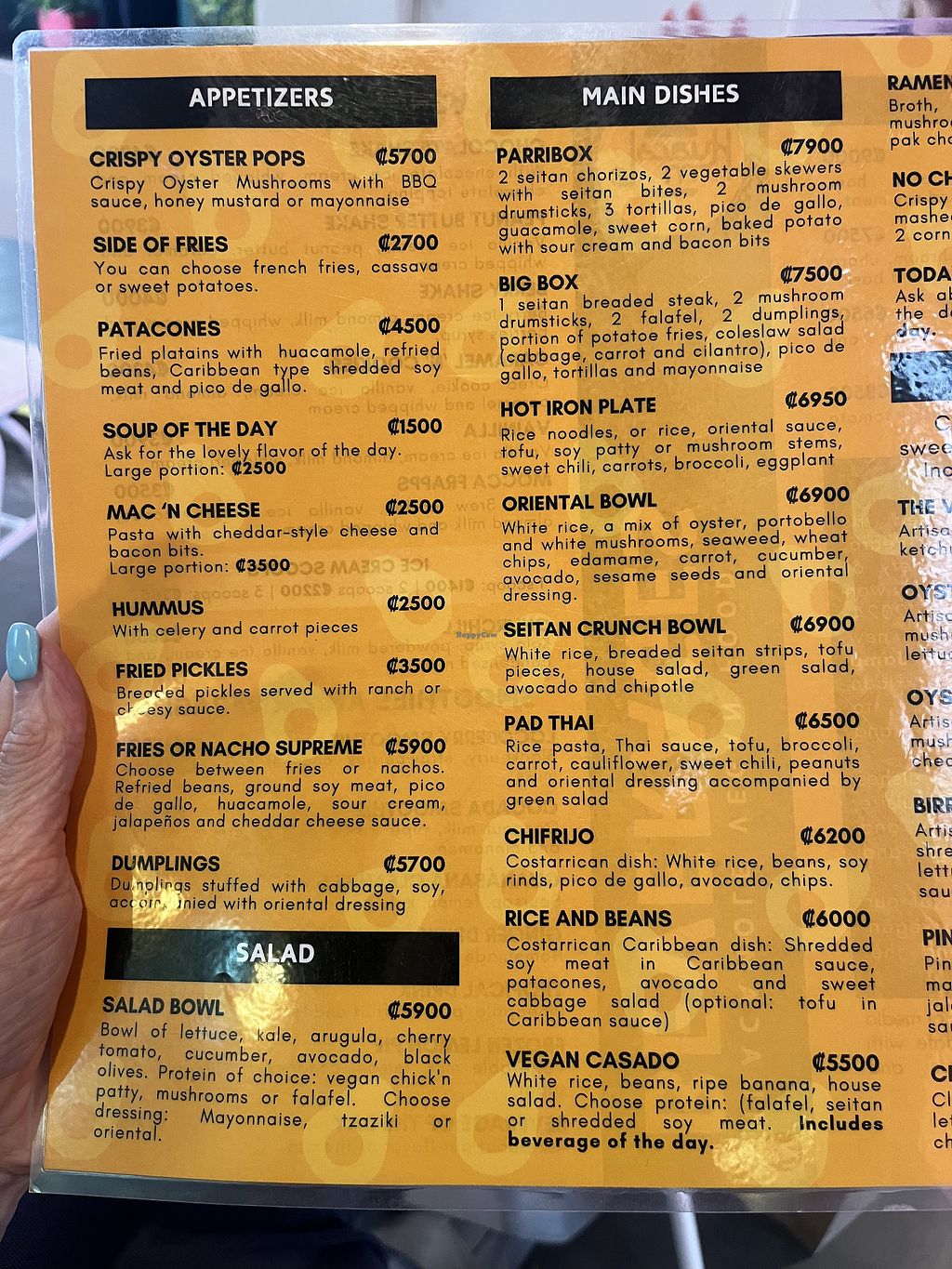 Had the most amazing burger here. The Oyster Chipotle burger was recommended by the server and was delicious. None of this fake vegan meat stuff, just layers of amazing breaded oyster mushrooms. The orea shake was also great. Wish I had more time in San José to try out their other options.
