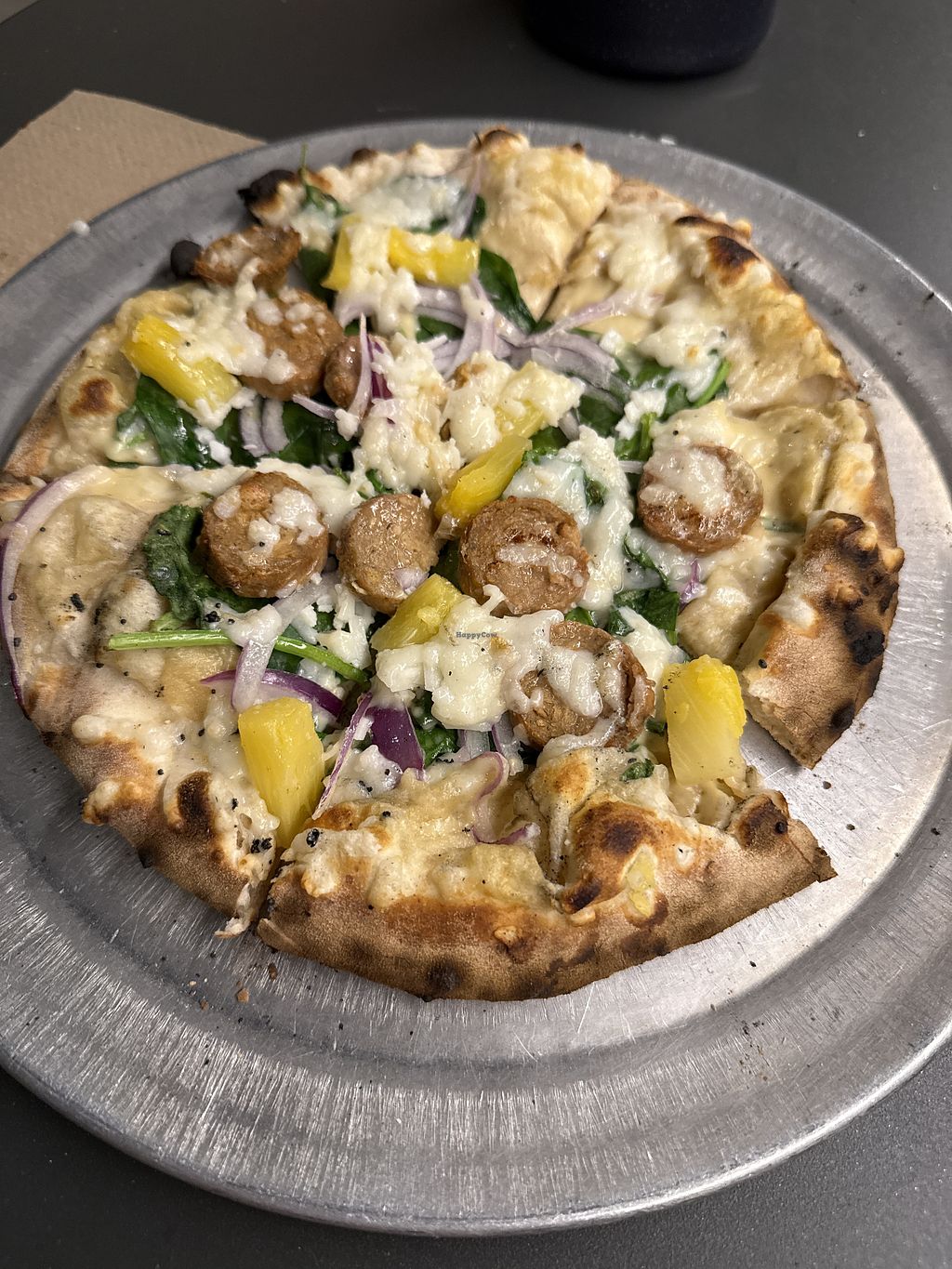 They have gluten free crust, multiple vegan sauce options for pizza(pesto, red sauce, vegan Alfredo sauce), both dayia and a tofu ricotta for the top, vegan sausage and tempeh, and a bunch of toppings and most of their pizza options can be made vegan if you don’t want to create your own :)) they also have salads, calzones and vegan dessert and alcohol.