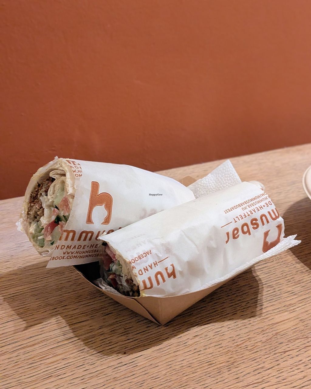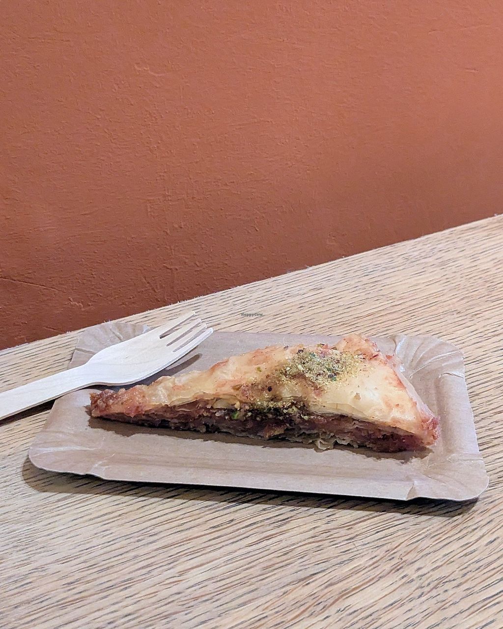 I have visited the restaurant multiple times for their hummus and falafel dishes, but most often I've had their Falafel pitas for takeaway. This time I had a Falafel pita along with a cup dessert. Their falafel is delicious and their pitas are filled with hummus & veggies with some sour cabbage that I really enjoyed.