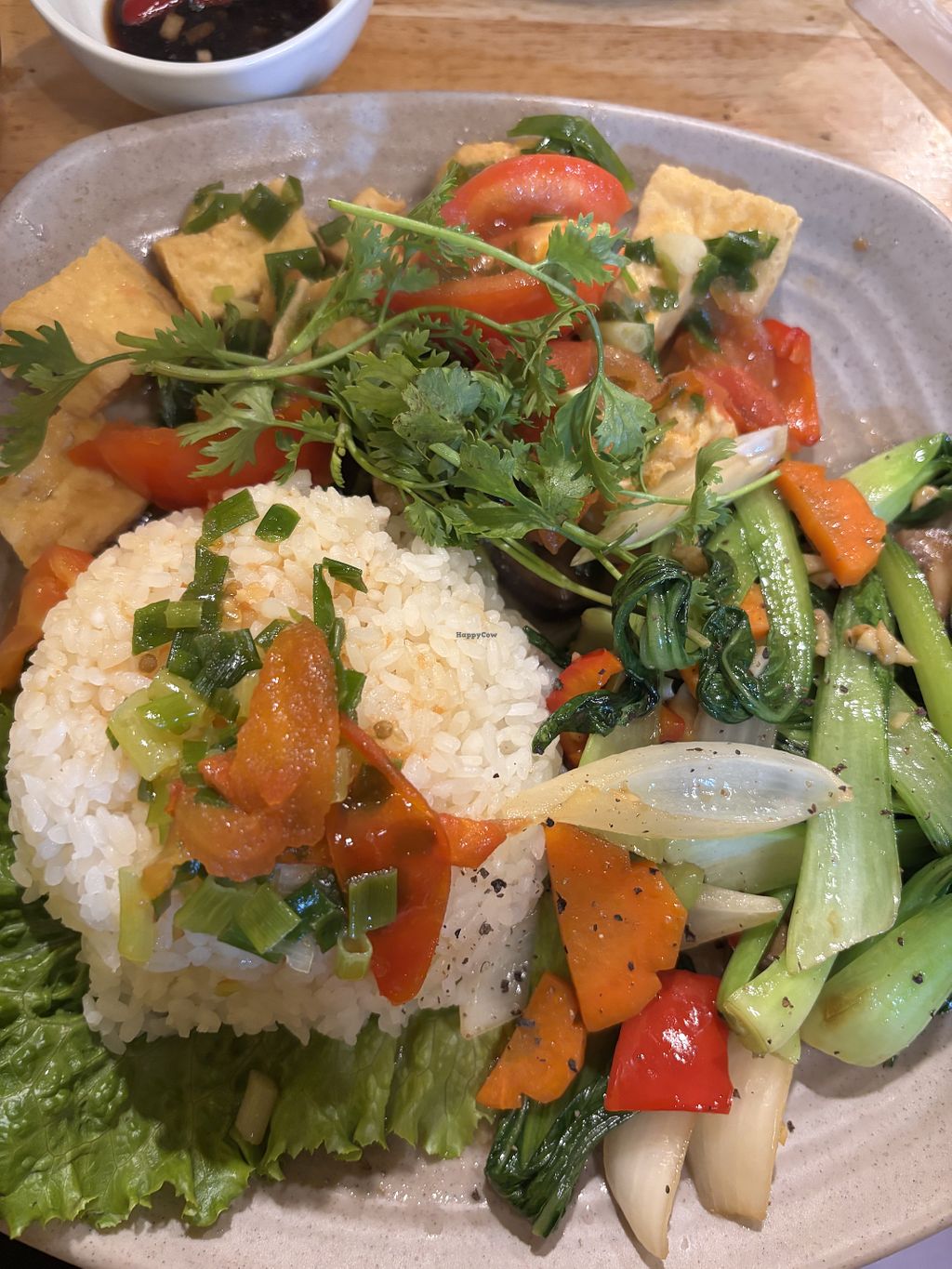 Stumbled across this place with a group of friends. The vegan options are great, there’s so much choice. I had the vegan chicken fried noodles (65k) and a beer (20k). Staff are helpful and know the menu well. Will definitely go back here.
