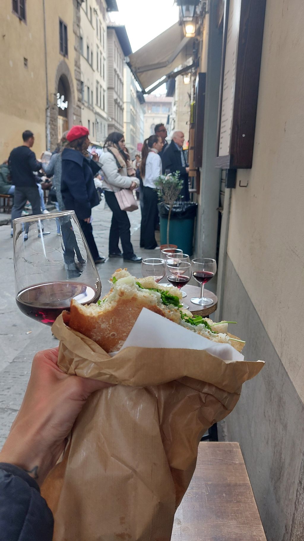 Da fiorentina questo posto, pur non essendo vegano, è una tappa fissa ogni qualvolta mi trovo a Firenze. Le opzioni vegane sono poche ma molto buone. Luogo con pochissimi posti a seder. Un must molto in voga è la schiacciata o panino con il bicchiere di vino.