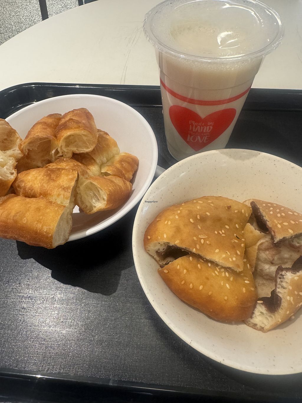 Serves meat, vegan options available. Chain restaurant serving yoo tiao with porridge or soya milk and other snacks. Vegan items are clearly marked and include filled buns such as sesame with red bean or peanut filling, fried nian gao, sweet potato balls, and yam balls. Open Mon-Sun 10:00am-10:00pm.