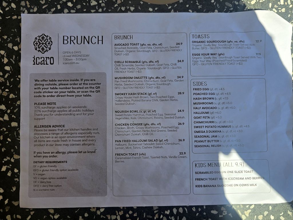 Nice vibe of people and place - menu reflects healthy options as well as big breaky. Gluten free vegan options are excellent I’d even take it up a little with more simple options like watermelon and lime or something easy fat free. Good produce vibes ❤️