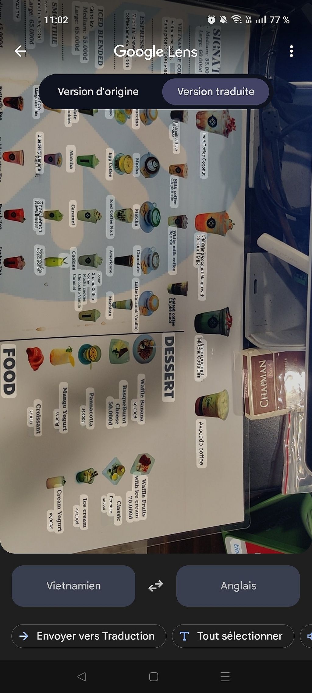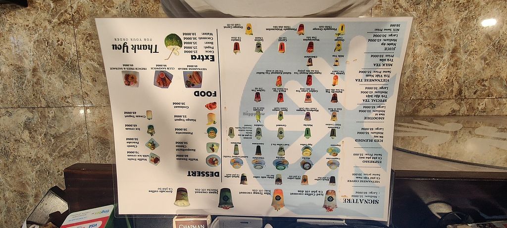 I had the soya matcha drink and was quite nice for 50,000. Good place to escape the heat and a Western kind of style coffee shop. The soy options were quite confusing so be sure to ask the staff if drinks are vegan as it seems only the cappuccino can be made with soy for some reason. Also some drinks are made with soy milk but have cream so ask without.