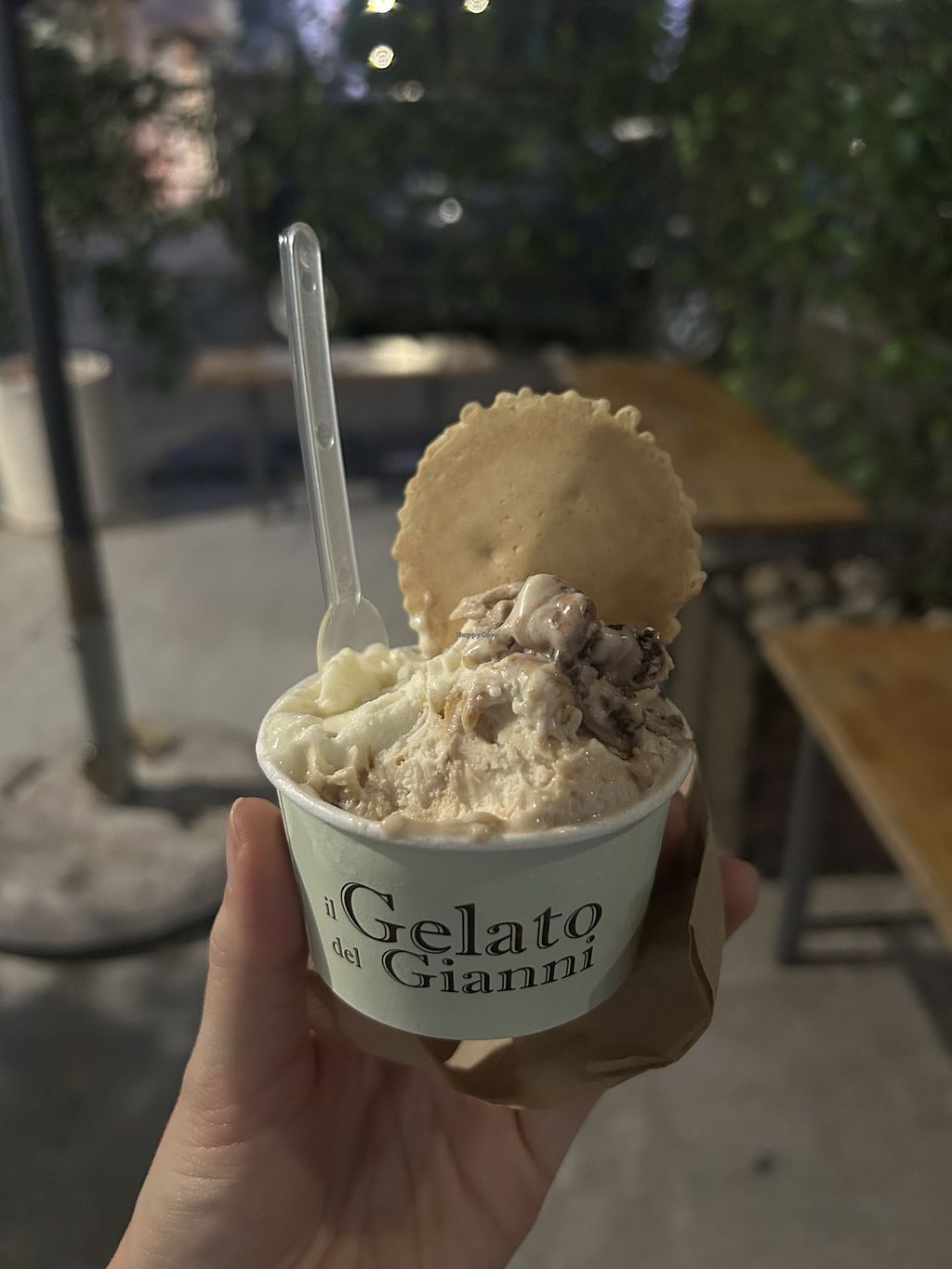 There was a variety of vegan options to choose from, and I decided on the following: Noce Krok with biscuits and hazelnut cream, orange almond as well as peanut butter and hazelnut. The gelato was amazing, priced at only €4 for three flavours.