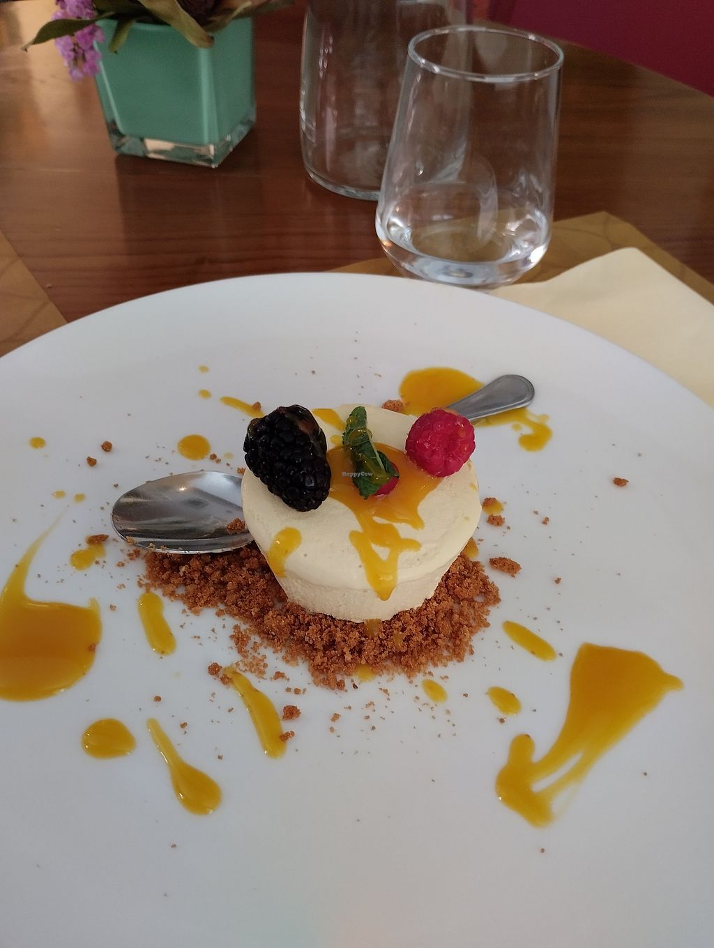 Good vegan selection, varied menu. The food was nice, especially the desert…but I would say good, not amazing (a little bit bland if I’m honest)…friendly staff, although service was a bit rushed…they were trying to give us the second course before we had finished the first! Not cheap. But a nice evening out.